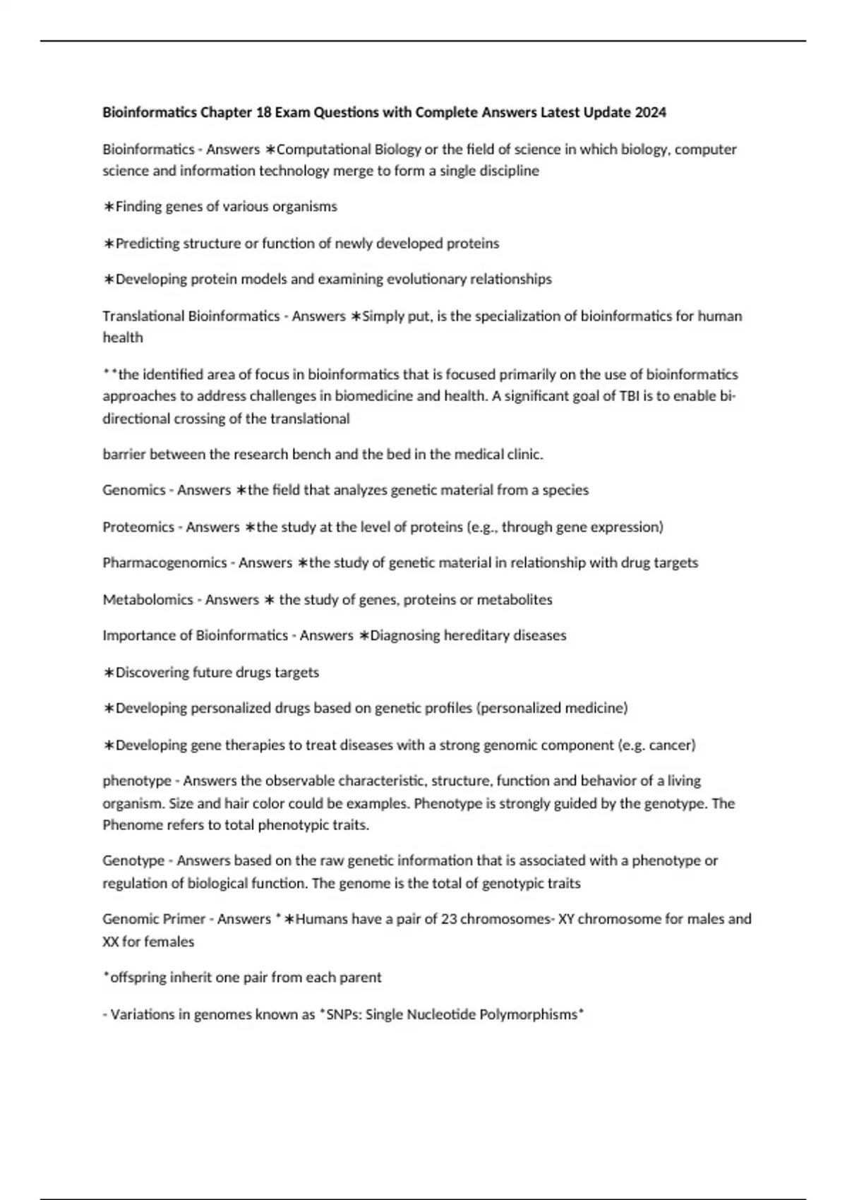 Translational Bioinformatics - Answers ∗Simply put, is the specialization of bioinformatics for human