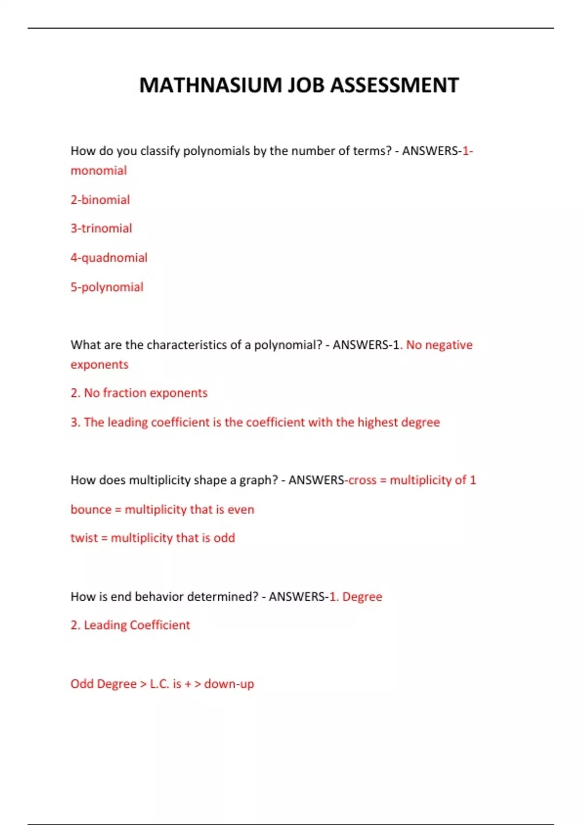 What are the characteristics of a polynomial? - ANSWERS-1. No negative