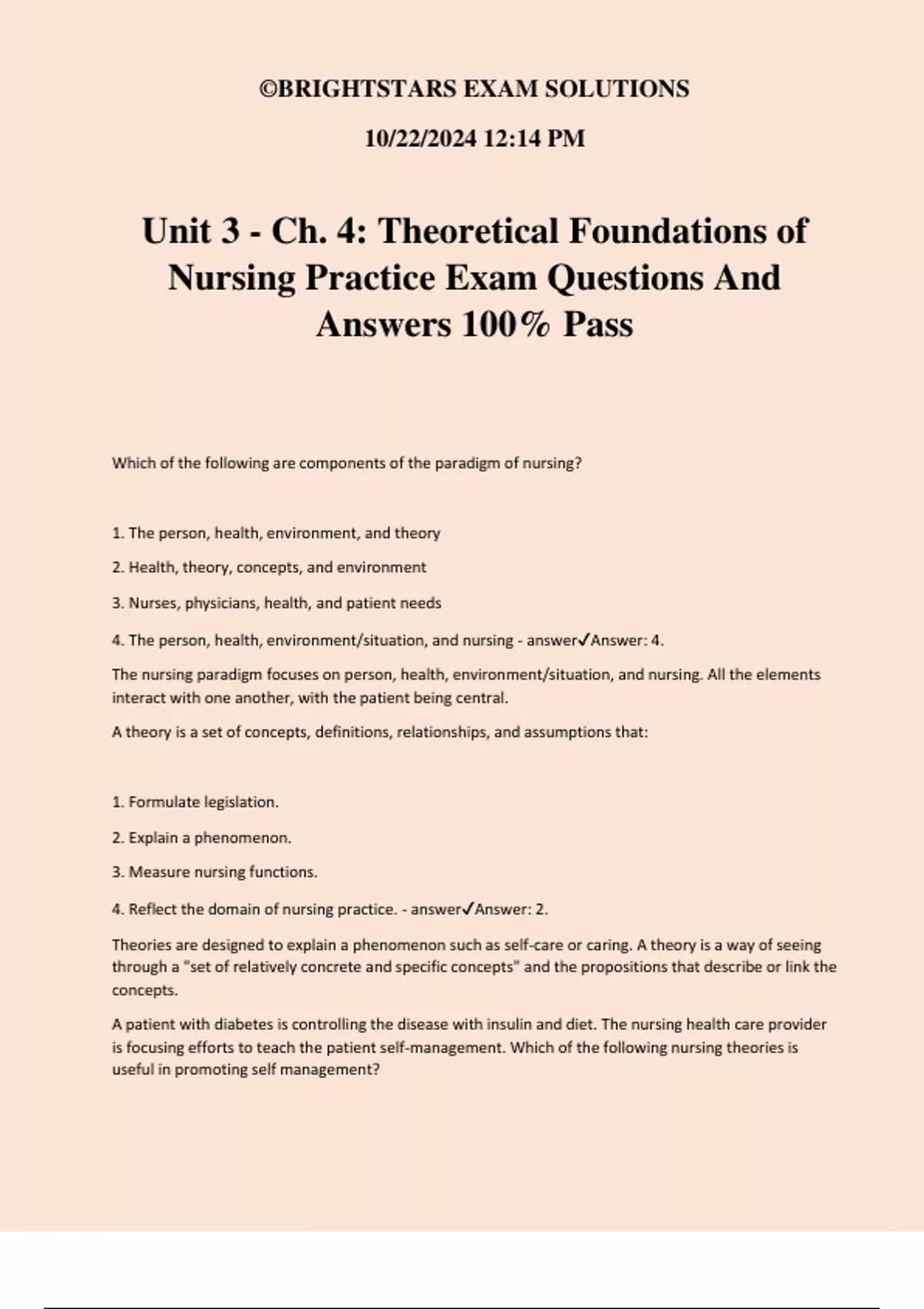 4. Reflect the domain of nursing practice. - answer✔Answer: 2.