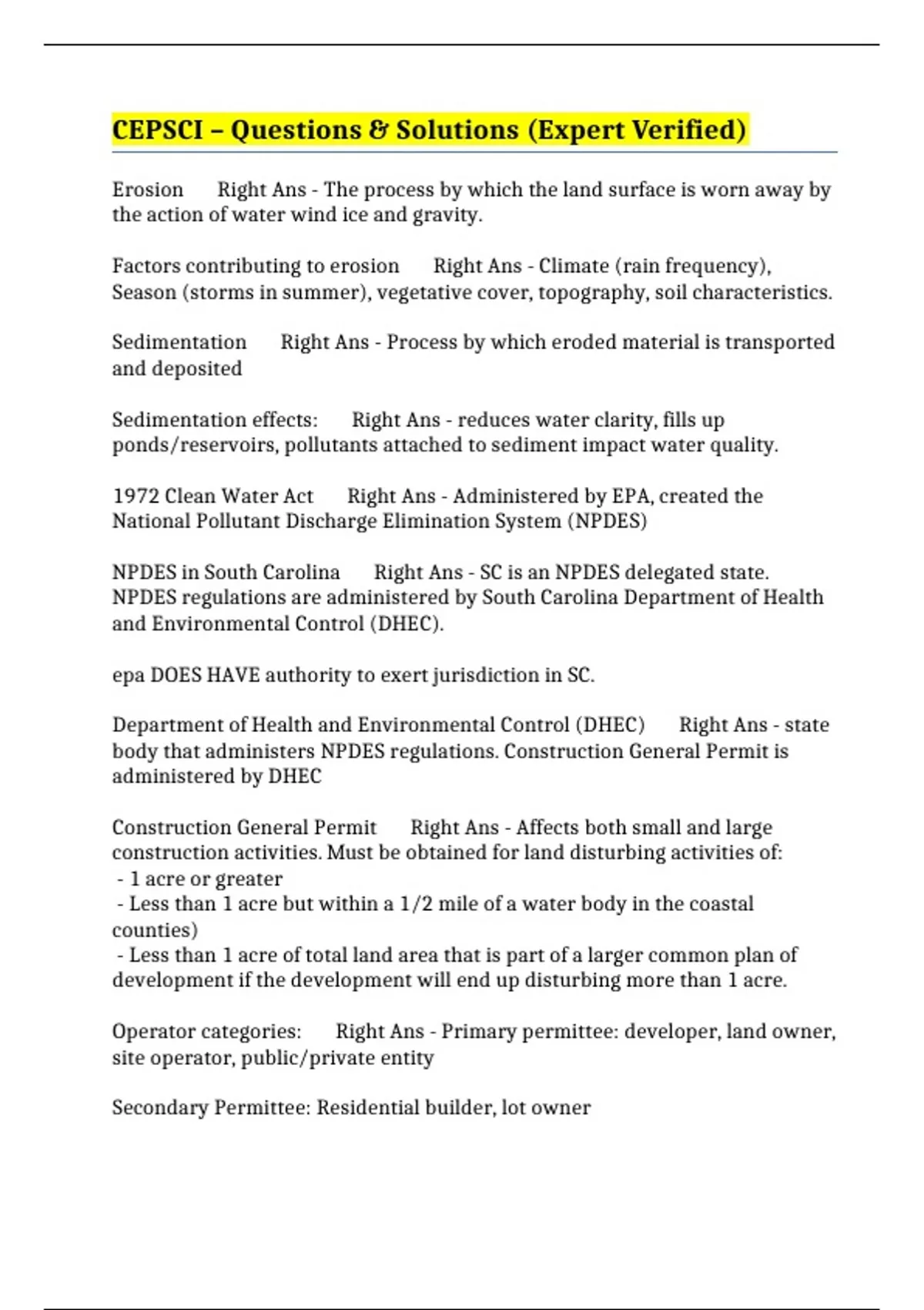 Construction General Permit Right Ans - Affects both small and large