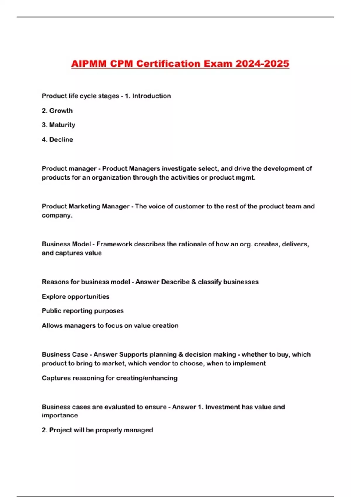 Business cases are evaluated to ensure - Answer 1. Investment has value and