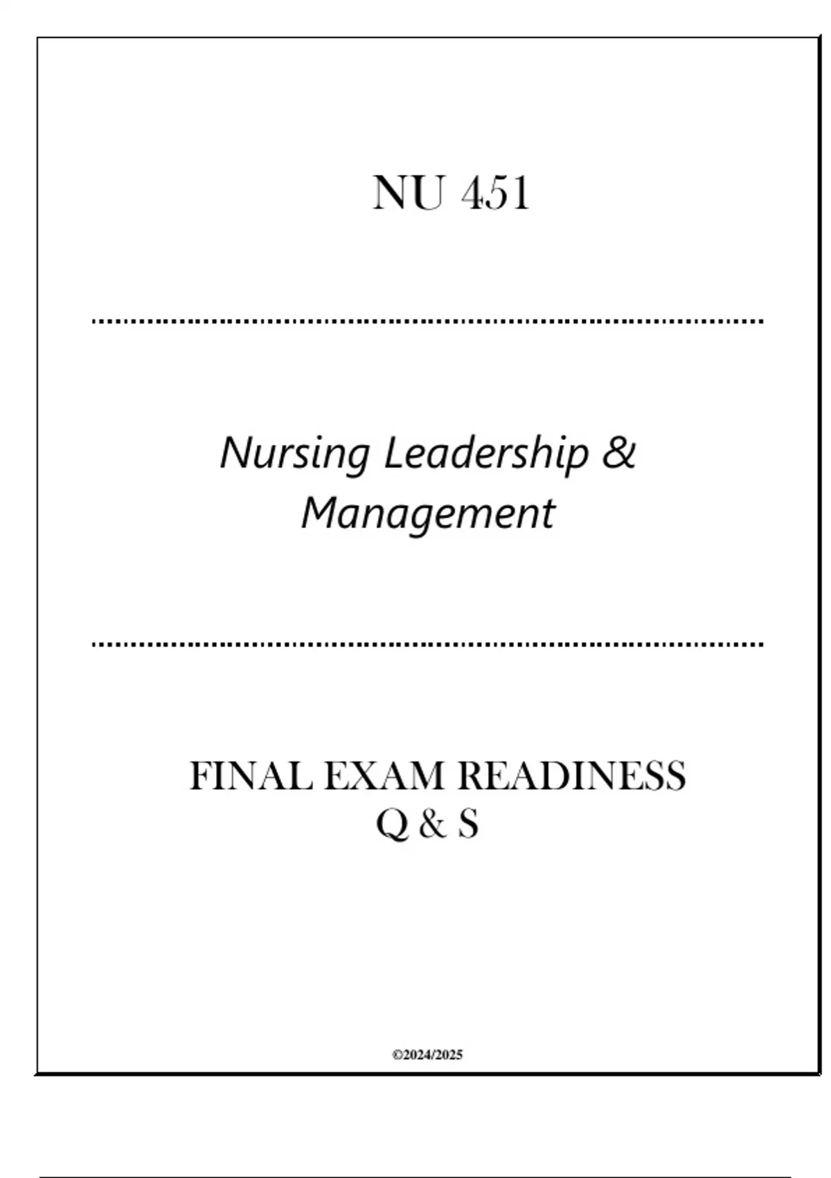 Nursing Leadership &