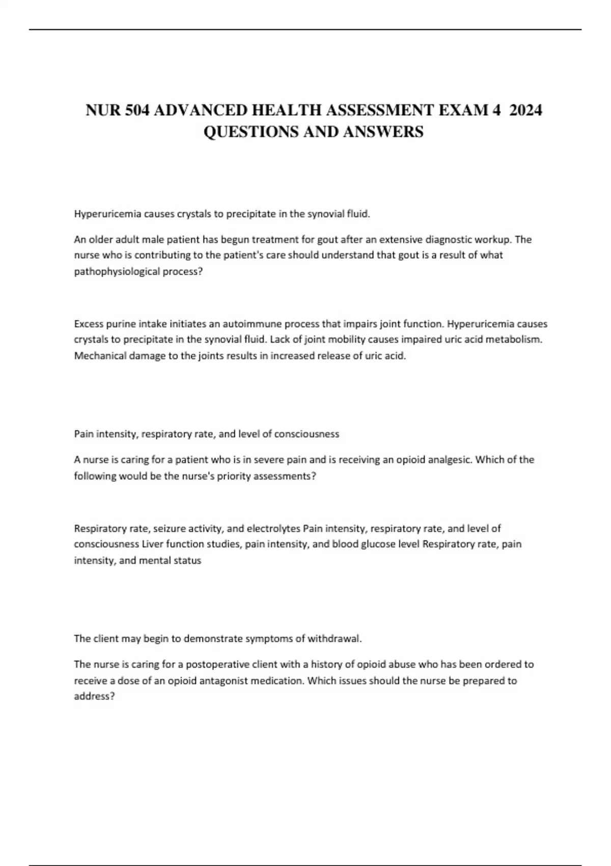 NUR 504 ADVANCED HEALTH ASSESSMENT EXAM 4 2024 QUESTIONS AND ANSWERS