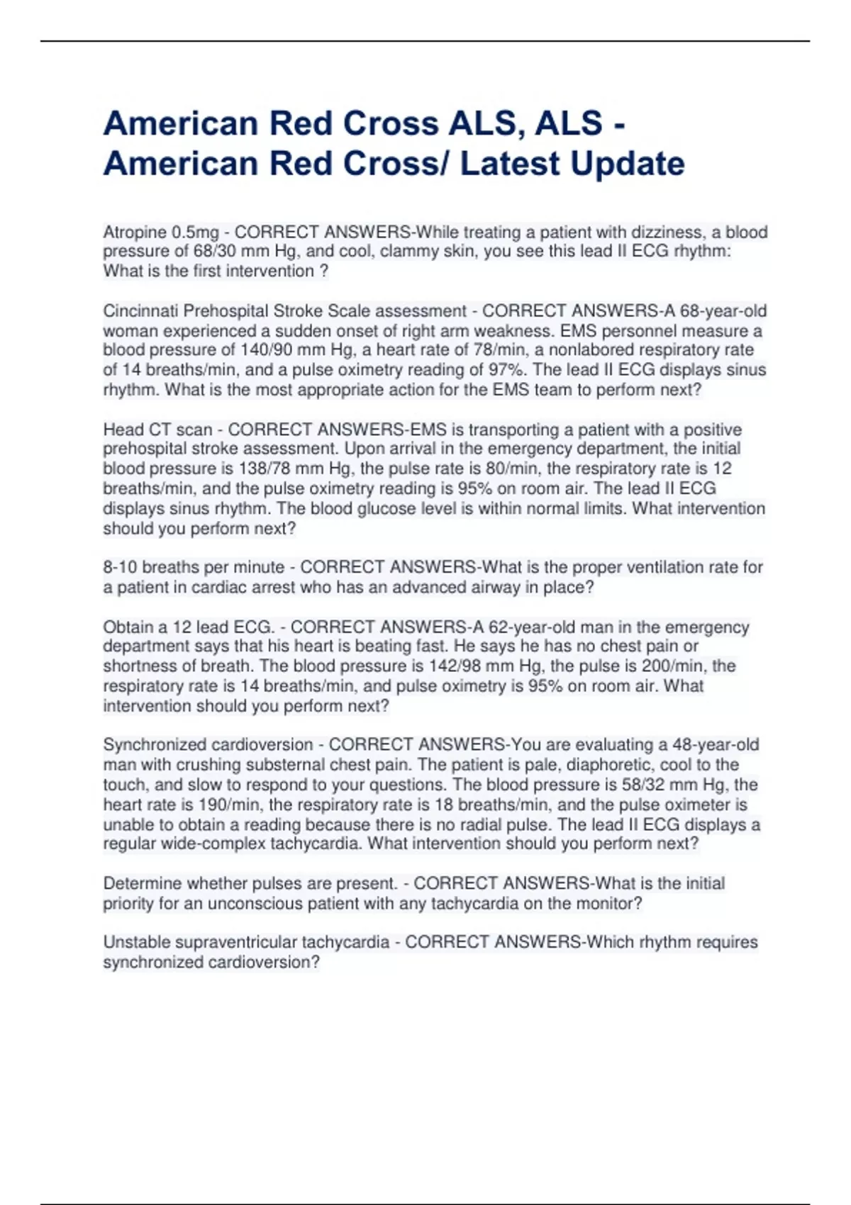 Synchronized cardioversion - CORRECT ANSWERS-You are evaluating a 48-year-old
