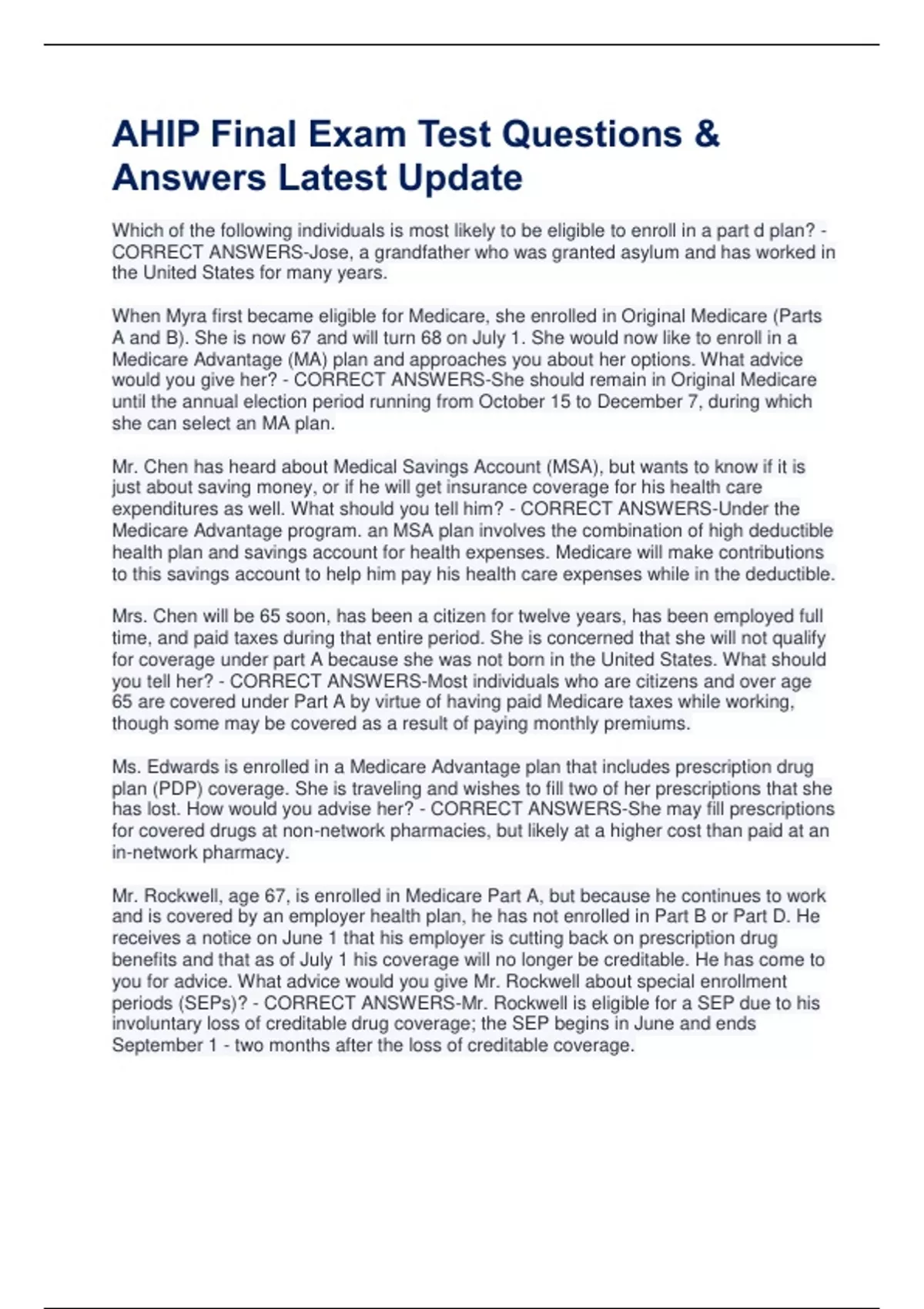 periods (SEPs)? - CORRECT ANSWERS-Mr. Rockwell is eligible for a SEP due to his