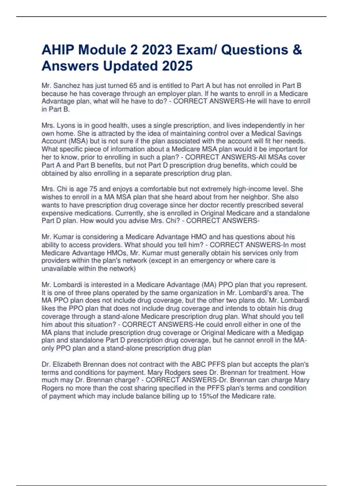 her to know, prior to enrolling in such a plan? - CORRECT ANSWERS-All MSAs cover