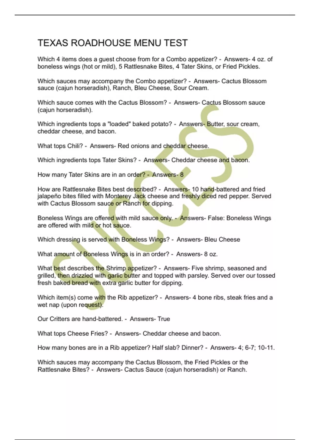 TEXAS ROADHOUSE MENU TEST