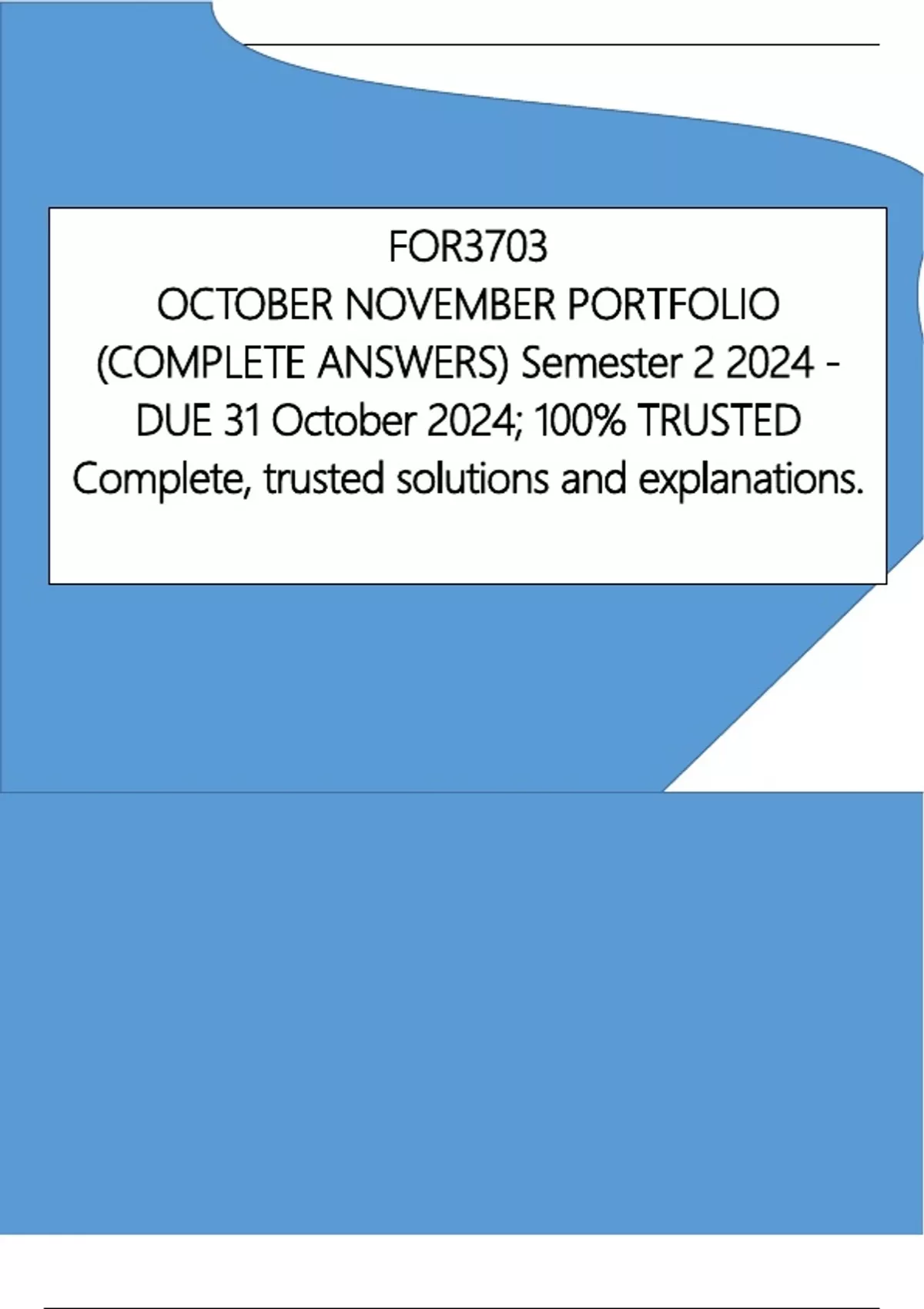 FOR3703 OCTOBER NOVEMBER PORTFOLIO (COMPLETE ANSWERS) Semester 2 2024 - DUE 31 October 2024; 100% TRUSTED Complete, trusted solutions and explanations