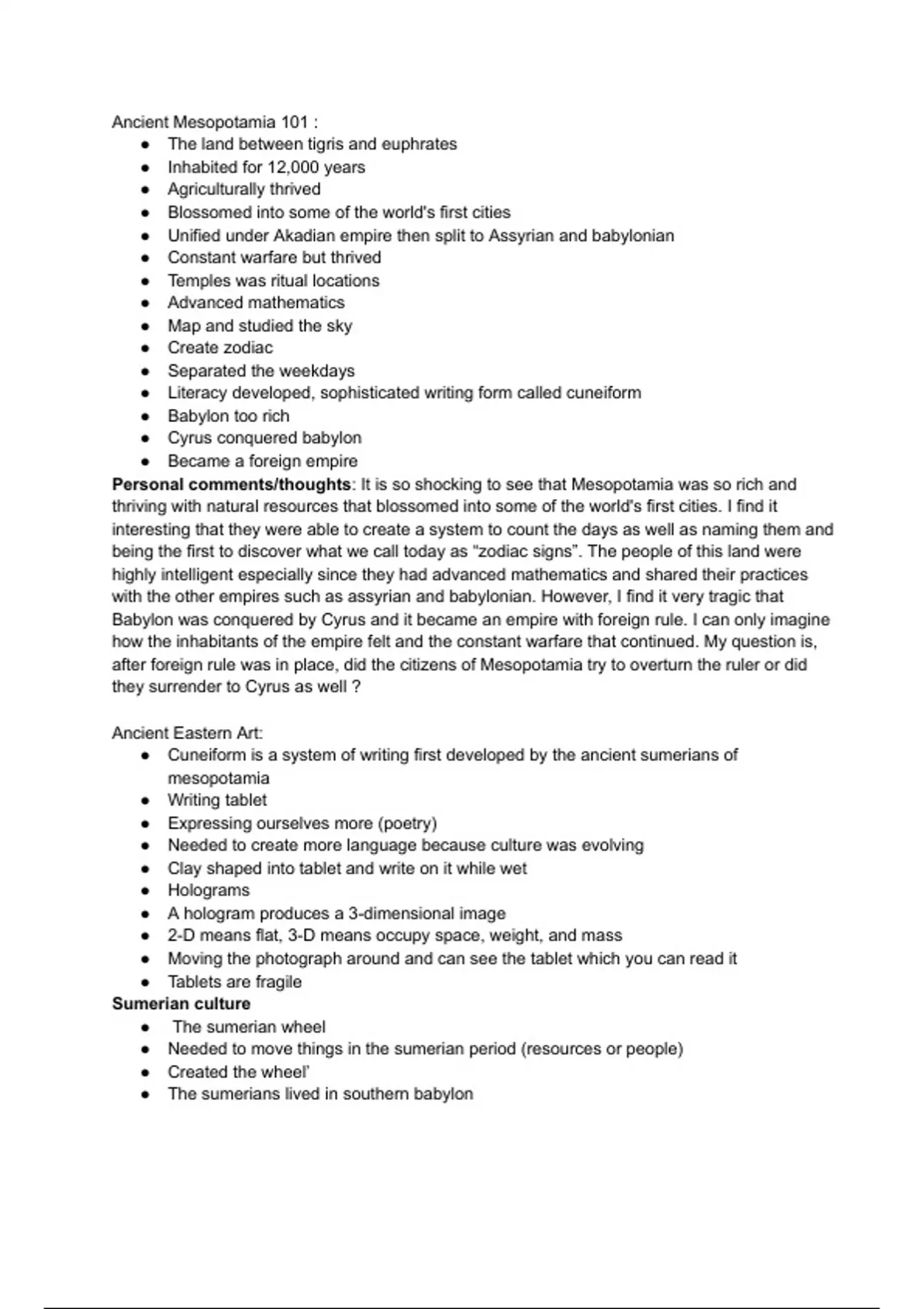 Personal comments/thoughts: It is so shocking to see that Mesopotamia was so rich and