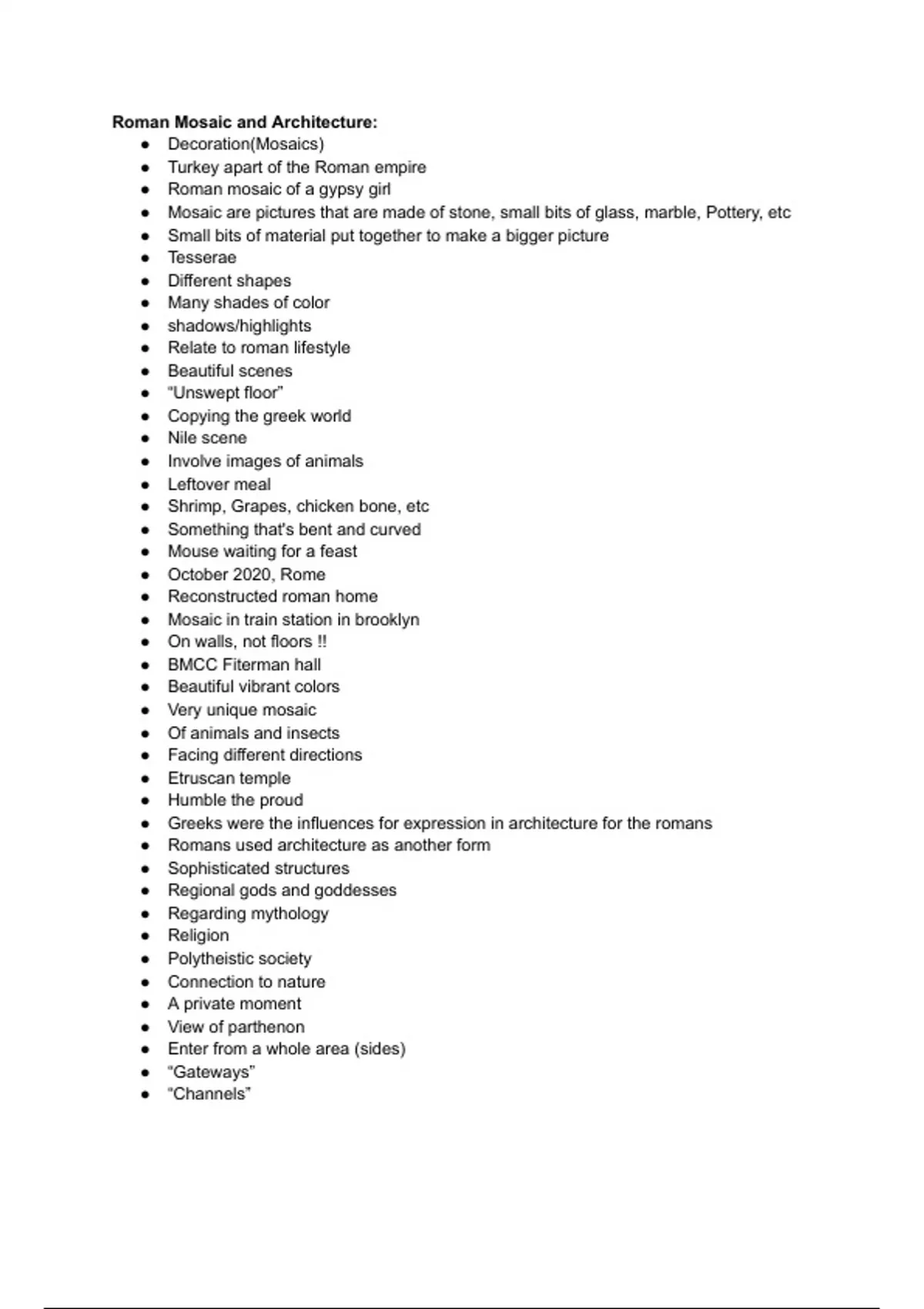 ● Mosaic are pictures that are made of stone, small bits of glass, marble, Pottery, etc