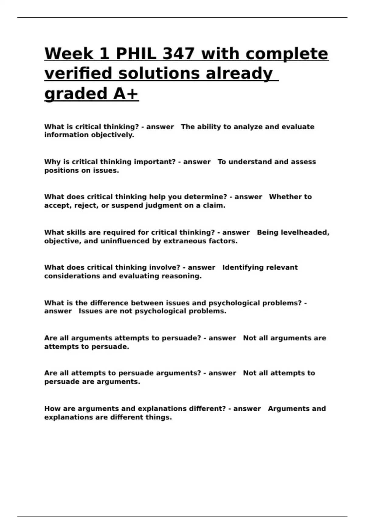 Week 1 PHIL 347 with complete verified solutions already graded A+