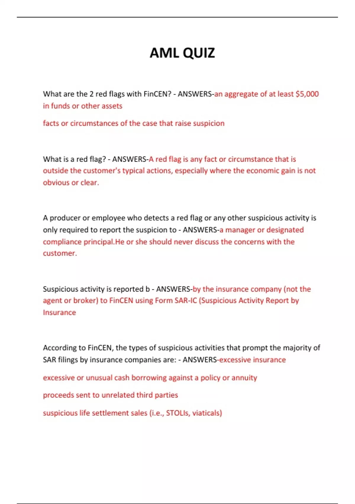 Suspicious activity is reported b - ANSWERS-by the insurance company (not the