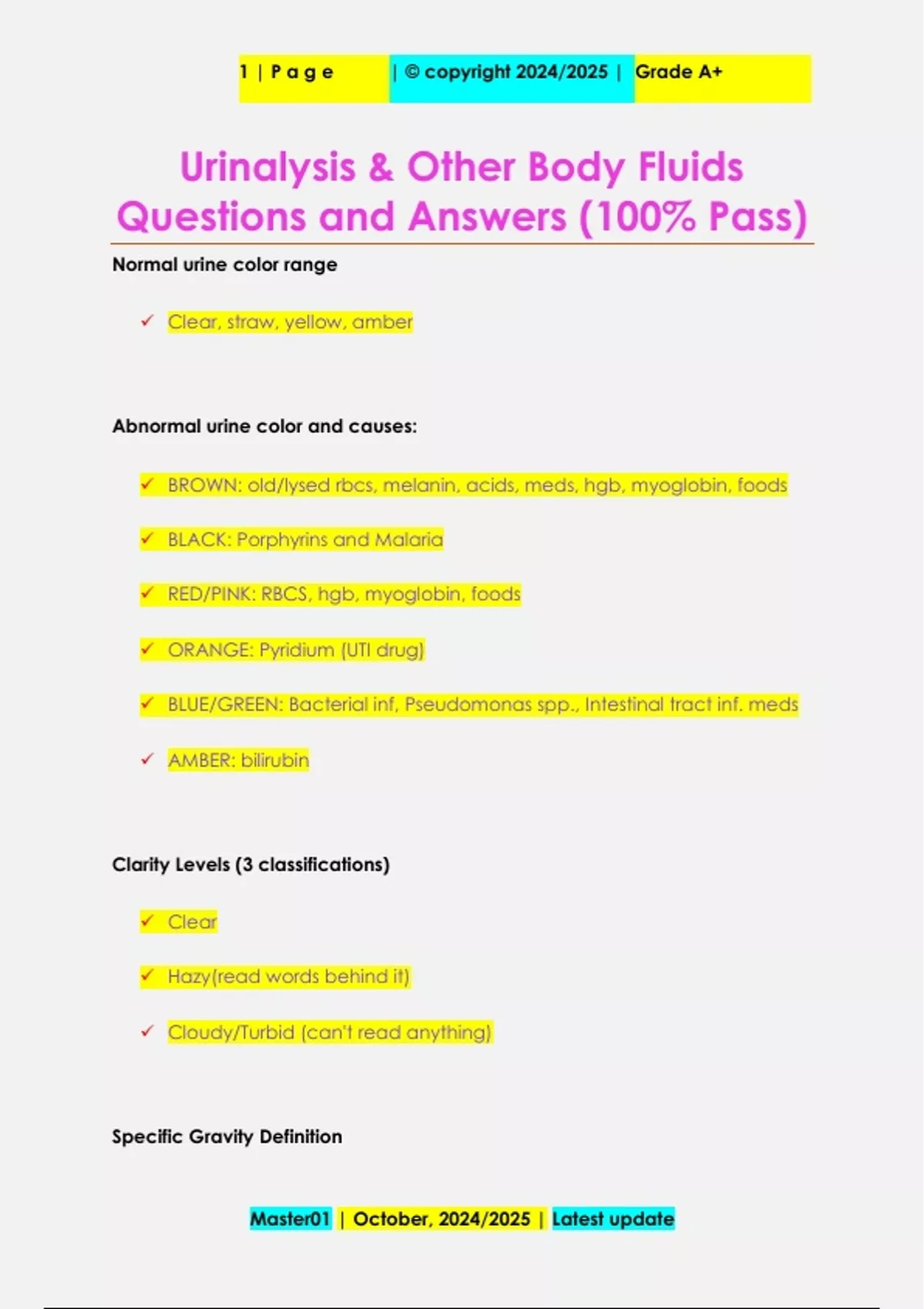 ✓ BROWN: old/lysed rbcs, melanin, acids, meds, hgb, myoglobin, foods