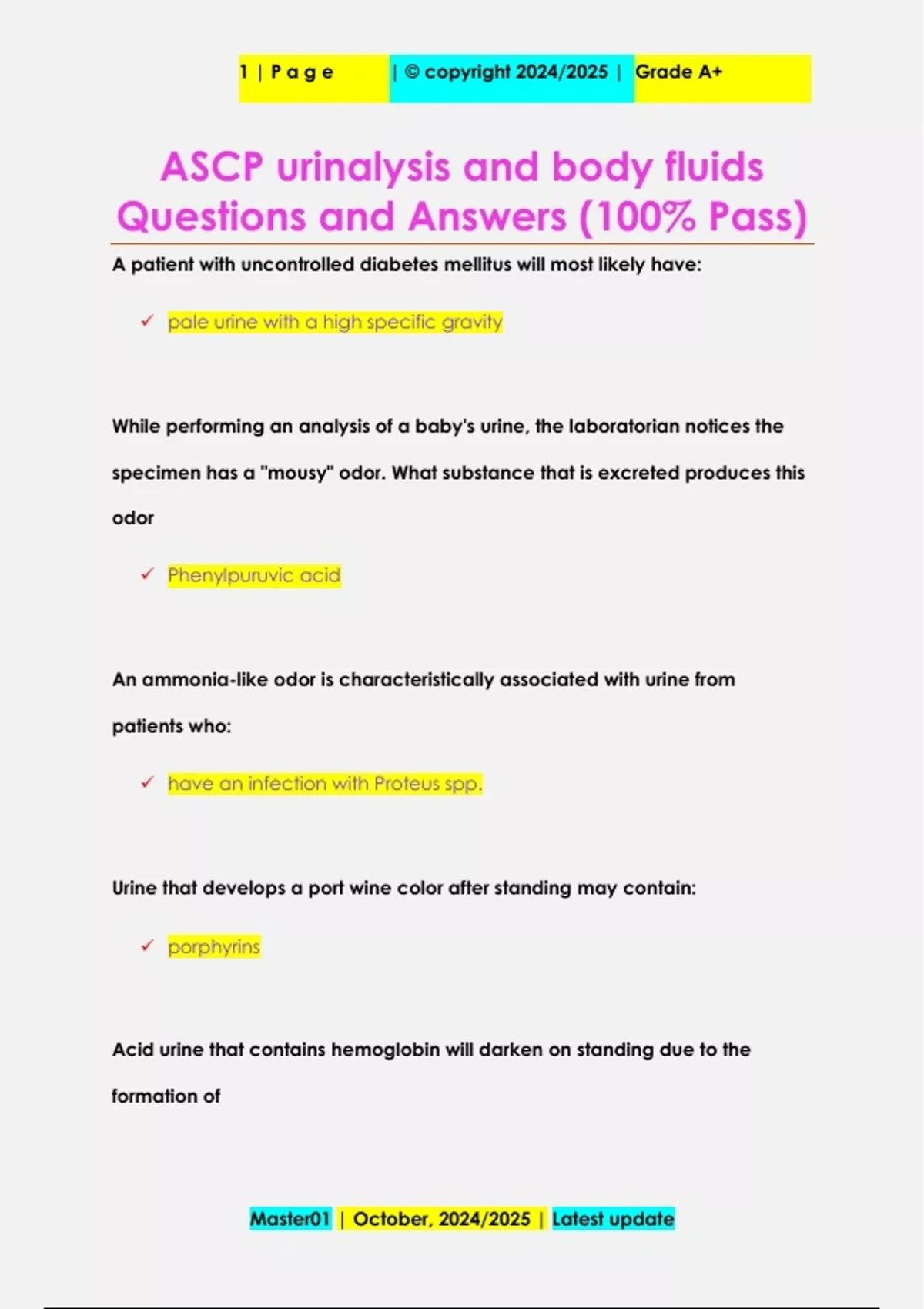 ASCP urinalysis and body fluids