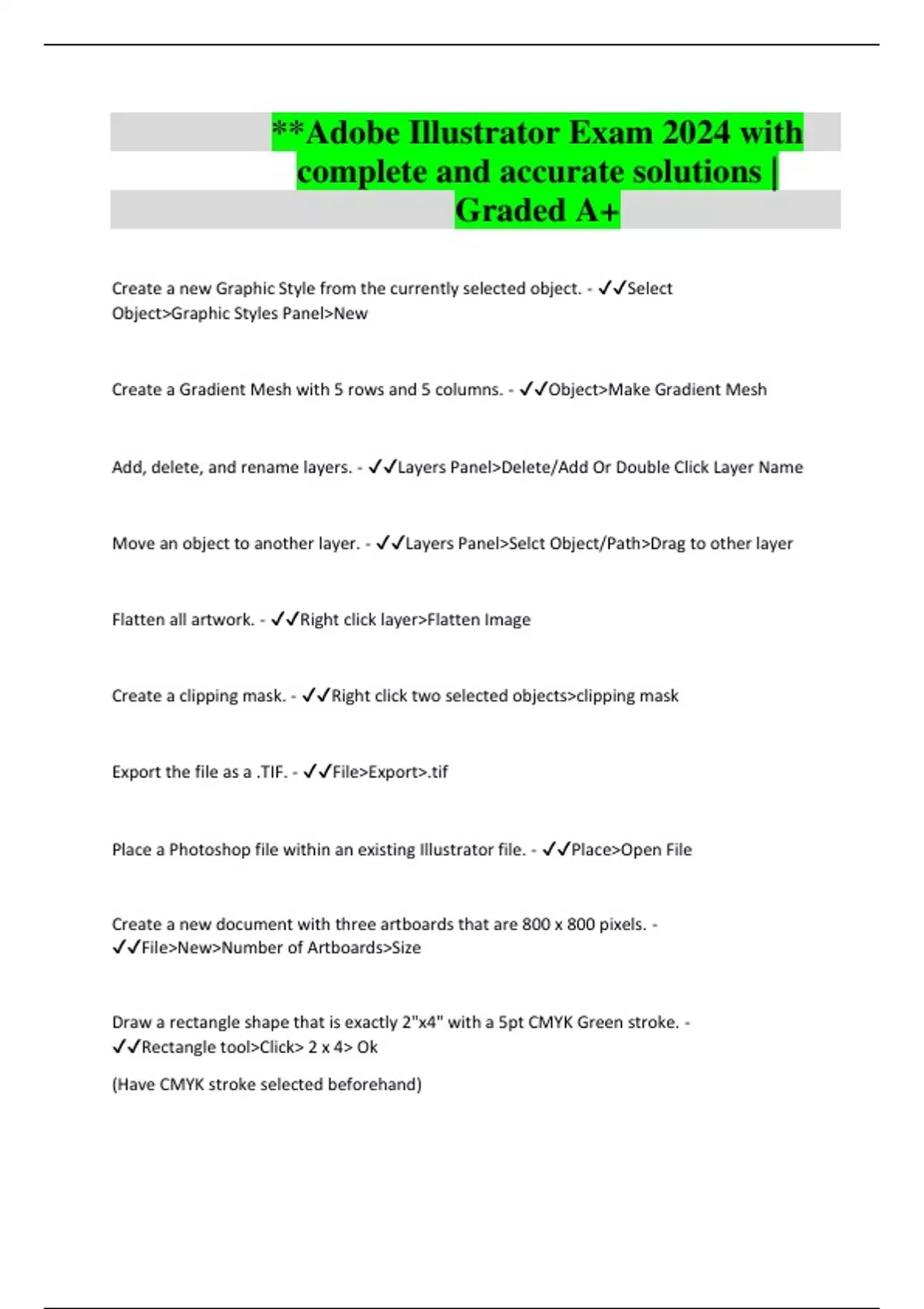 Adobe Illustrator Certification Exam Bundle Questions and 100% correct Answers A Grades Guaranteed