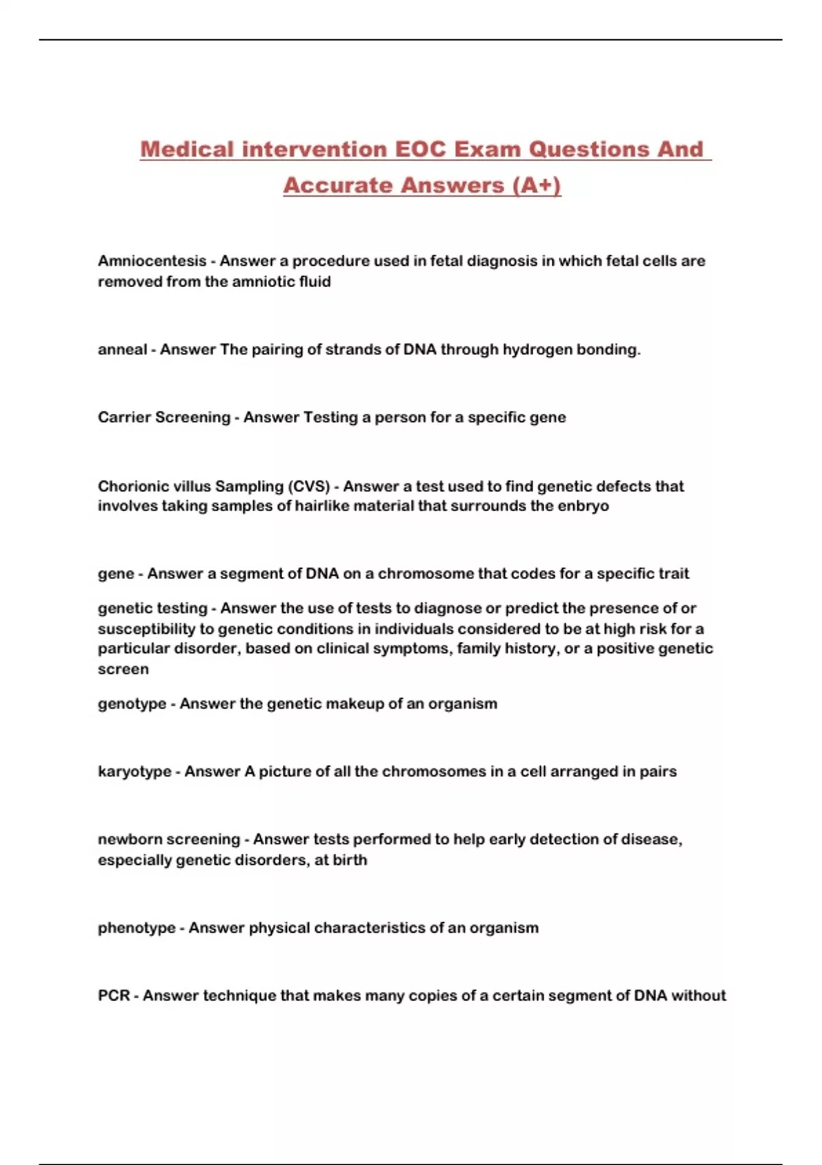Medical intervention EOC Exam Questions And