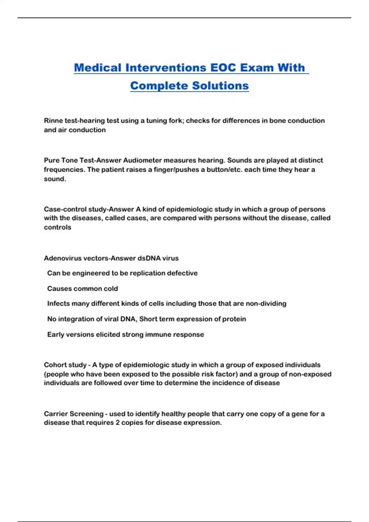 Medical Interventions EOC Exam With