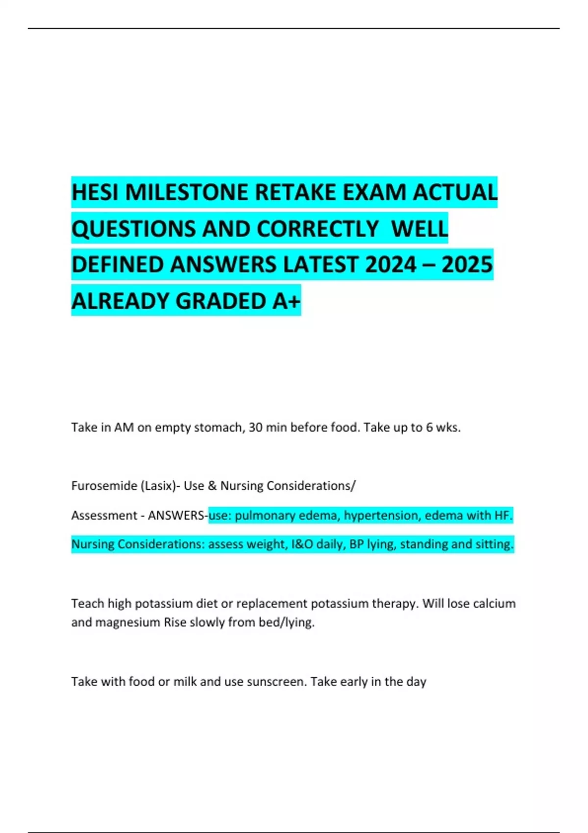 Furosemide (Lasix)- Use & Nursing Considerations/