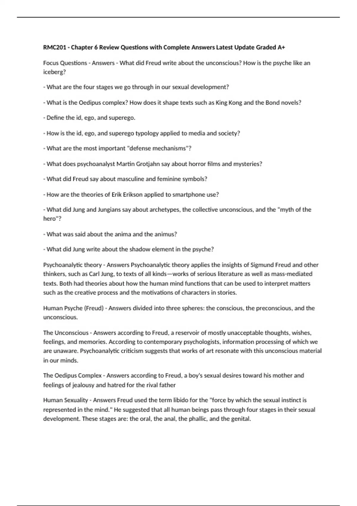Focus Questions - Answers - What did Freud write about the unconscious? How is the psyche like an