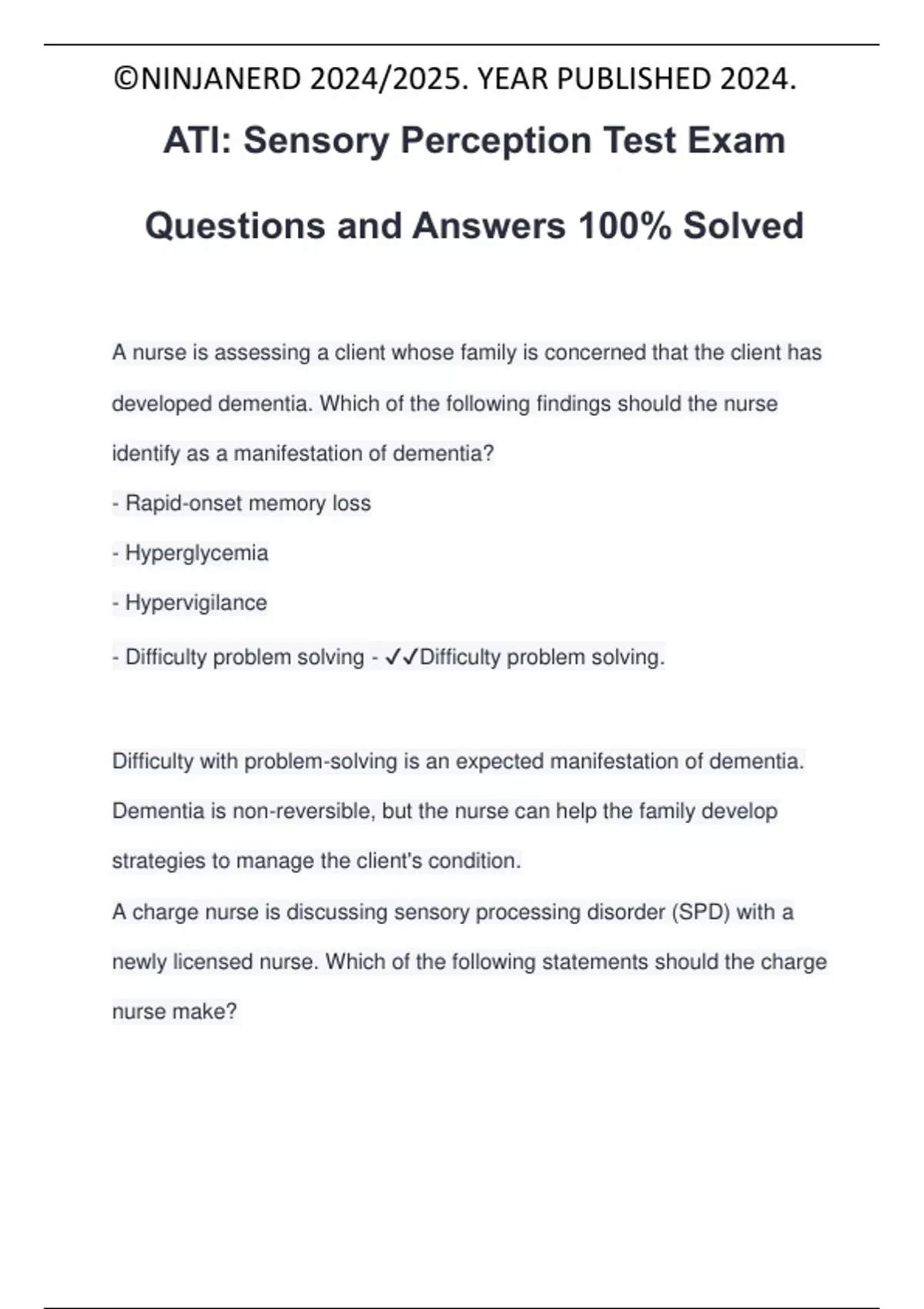 Difficulty with problem-solving is an expected manifestation of dementia.