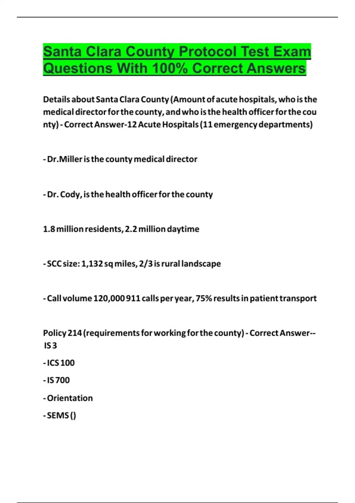 Santa Clara County Protocol Test Exam Questions With 100% Correct Answers