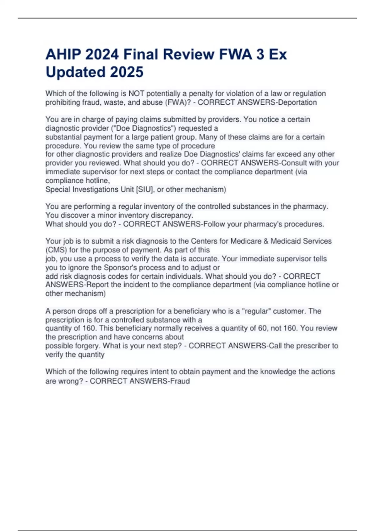 prohibiting fraud, waste, and abuse (FWA)? - CORRECT ANSWERS-Deportation
