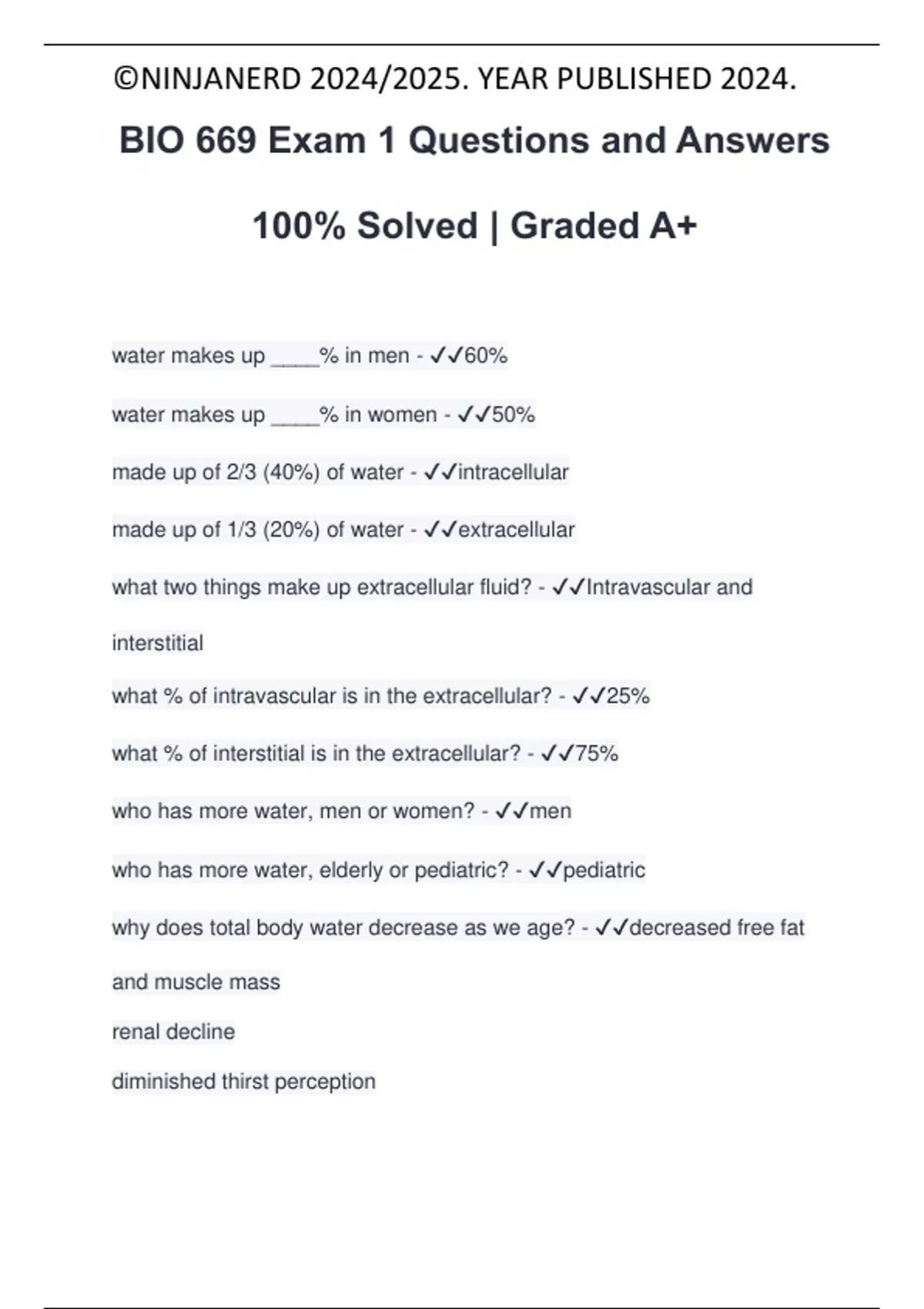 made up of 1/3 (20%) of water - ✔✔extracellular
