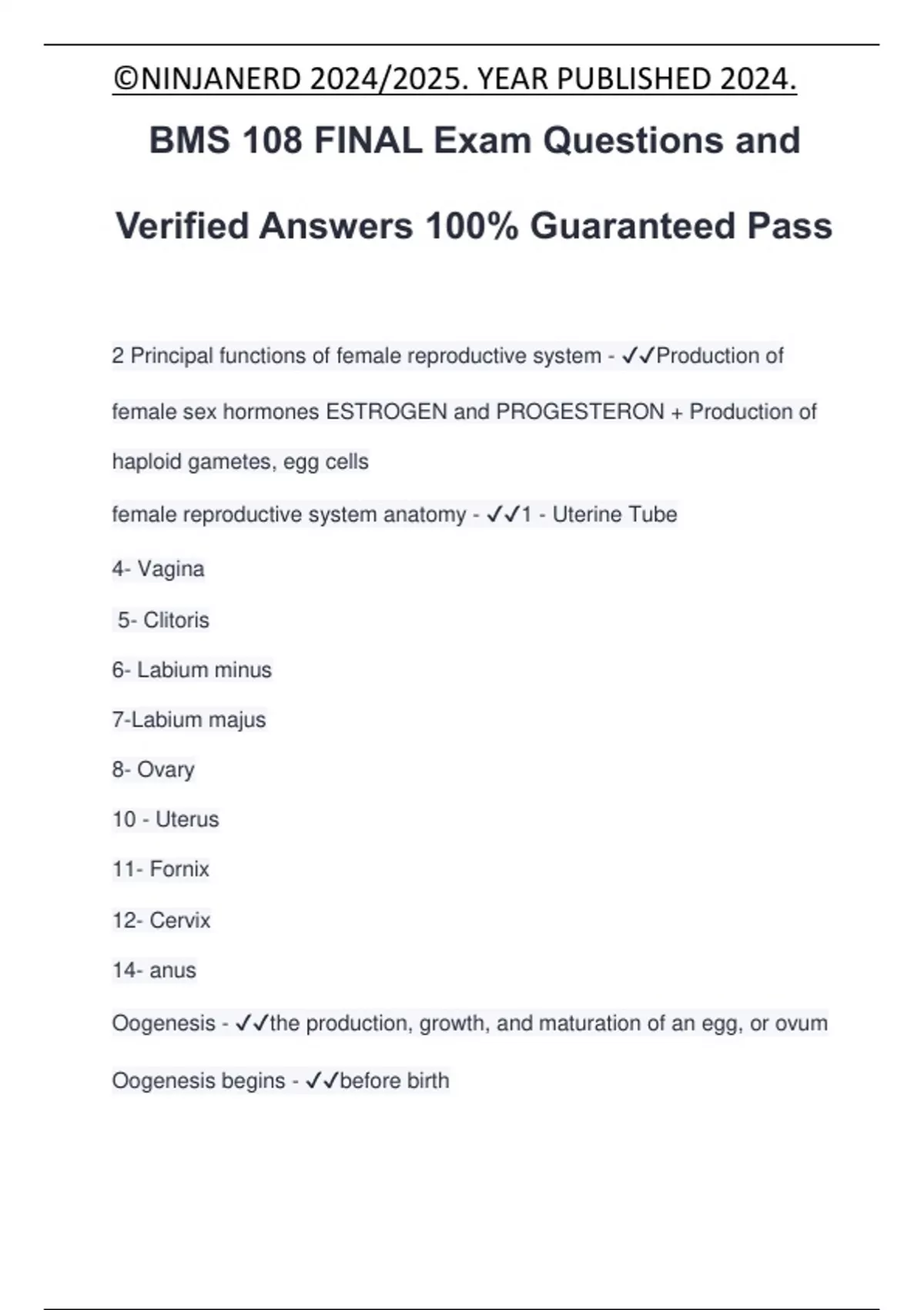 BMS 108 FINAL Exam Questions and