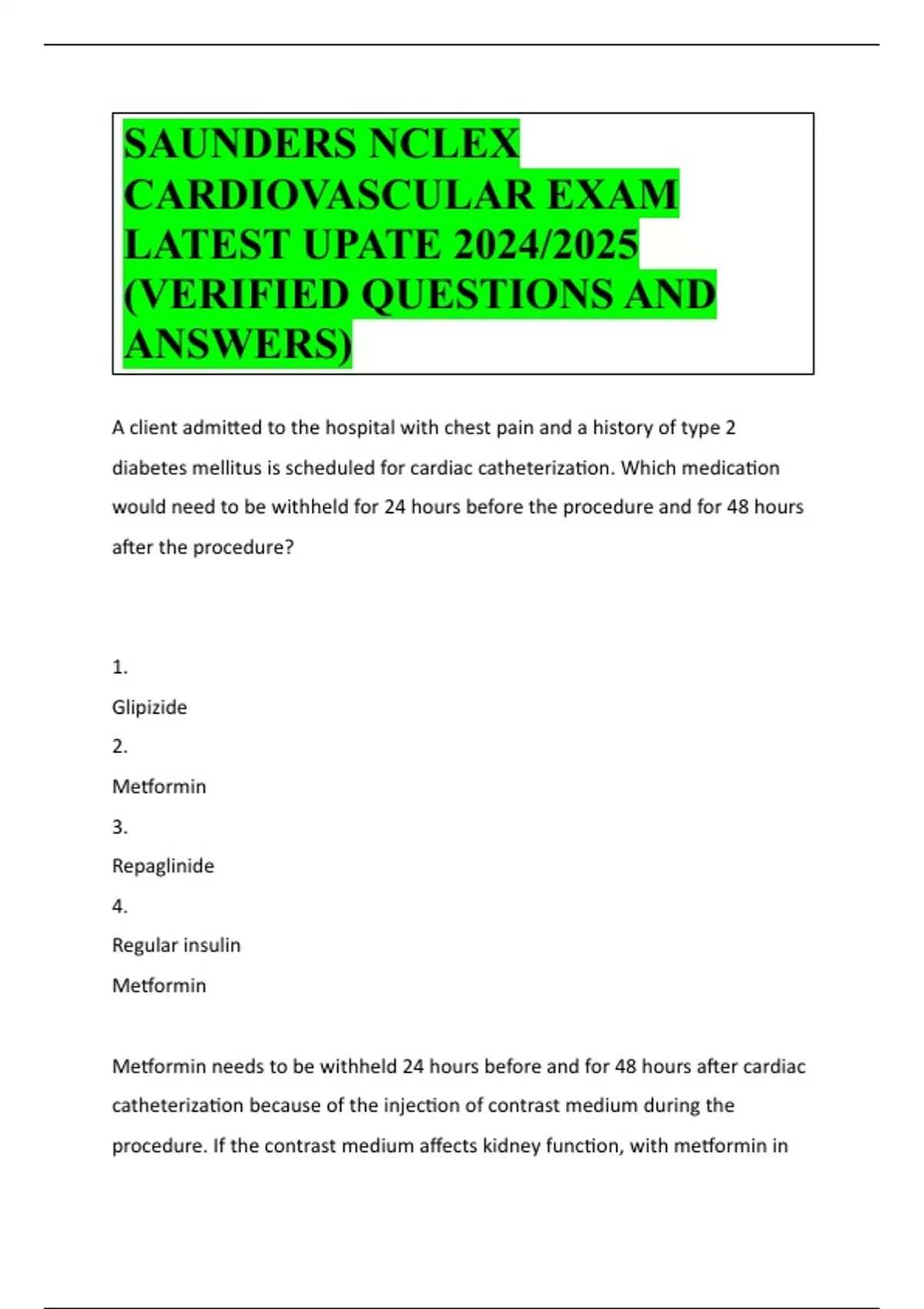 diabetes mellitus is scheduled for cardiac catheteriza9on. Which medica9on
