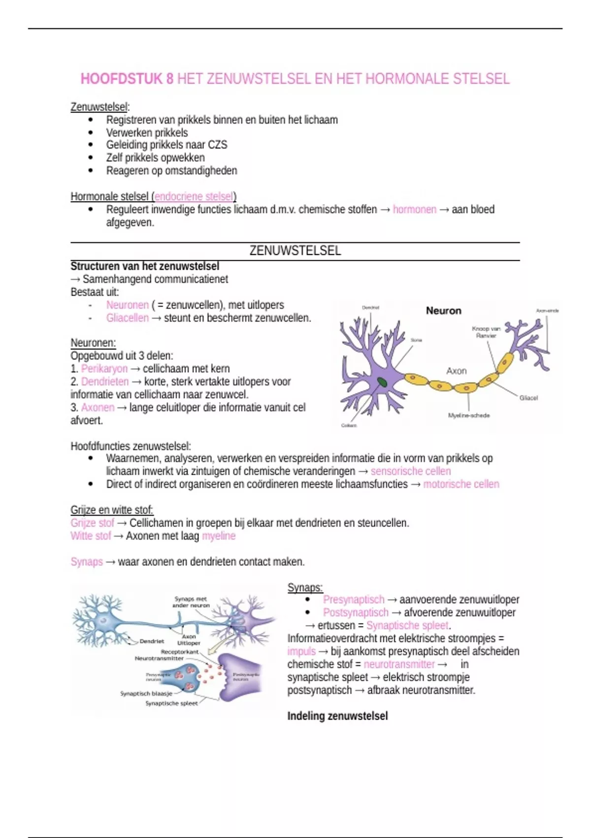 HOOFDSTUK 8 HET ZENUWSTELSEL EN HET HORMONALE STELSEL