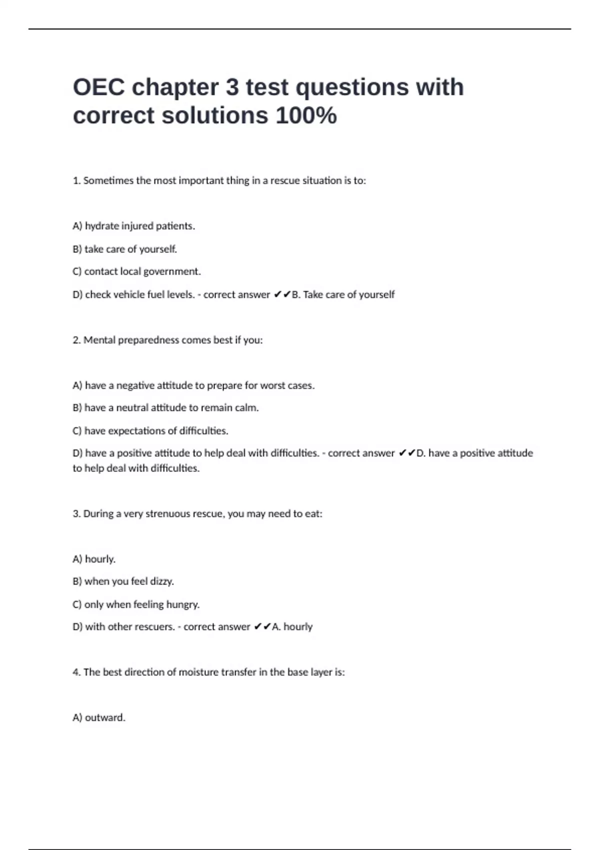D) check vehicle fuel levels. - correct answer ✔✔B. Take care of yourself