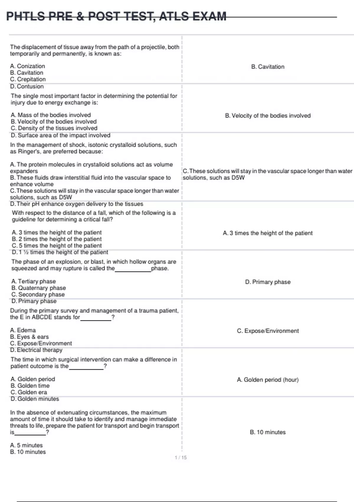 ,PHTLS PRE & POST TEST, ATLS EXAM