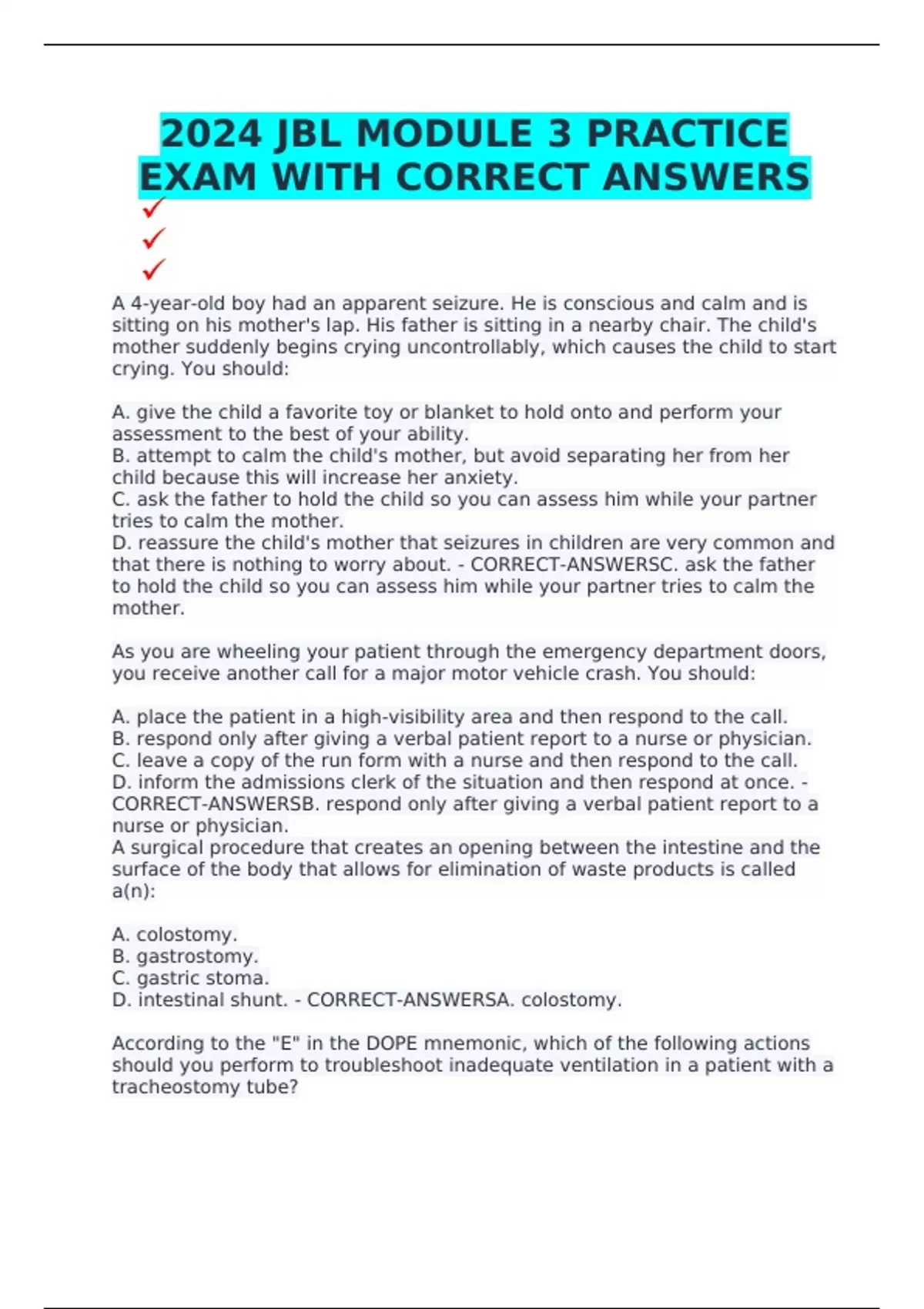 EXAM WITH CORRECT ANSWERS