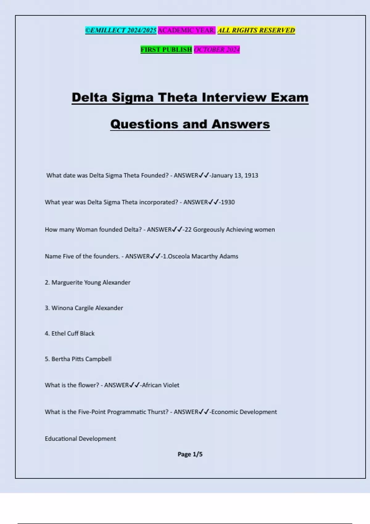 Mission Statement - ANSWER✔✔-Delta Sigma Theta Sorority, Incorporated is an organization of college