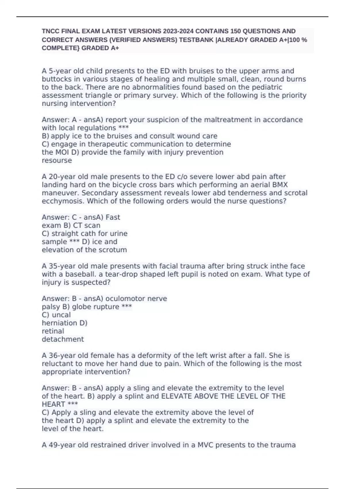 ,TNCC FINAL EXAM LATEST VERSIONS 2023-2024 CONTAINS 150 QUESTIONS AND