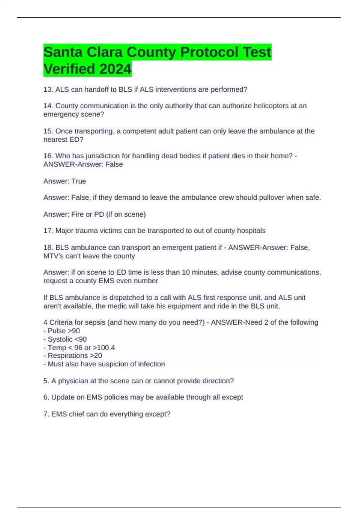 18. BLS ambulance can transport an emergent patient if - ANSWER-Answer: False,