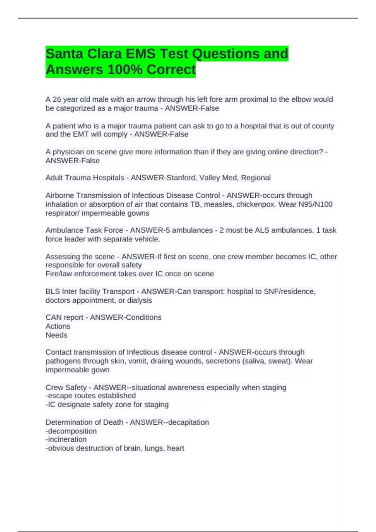 Santa Clara EMS Test Questions and