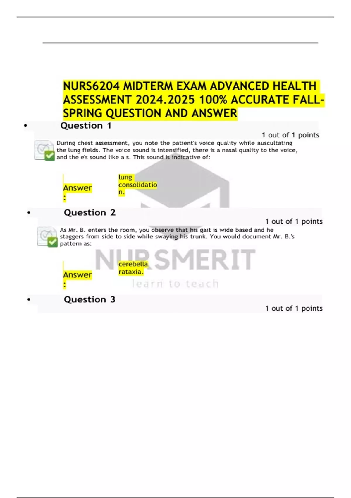 NURS6204 MIDTERM EXAM ADVANCED HEALTH