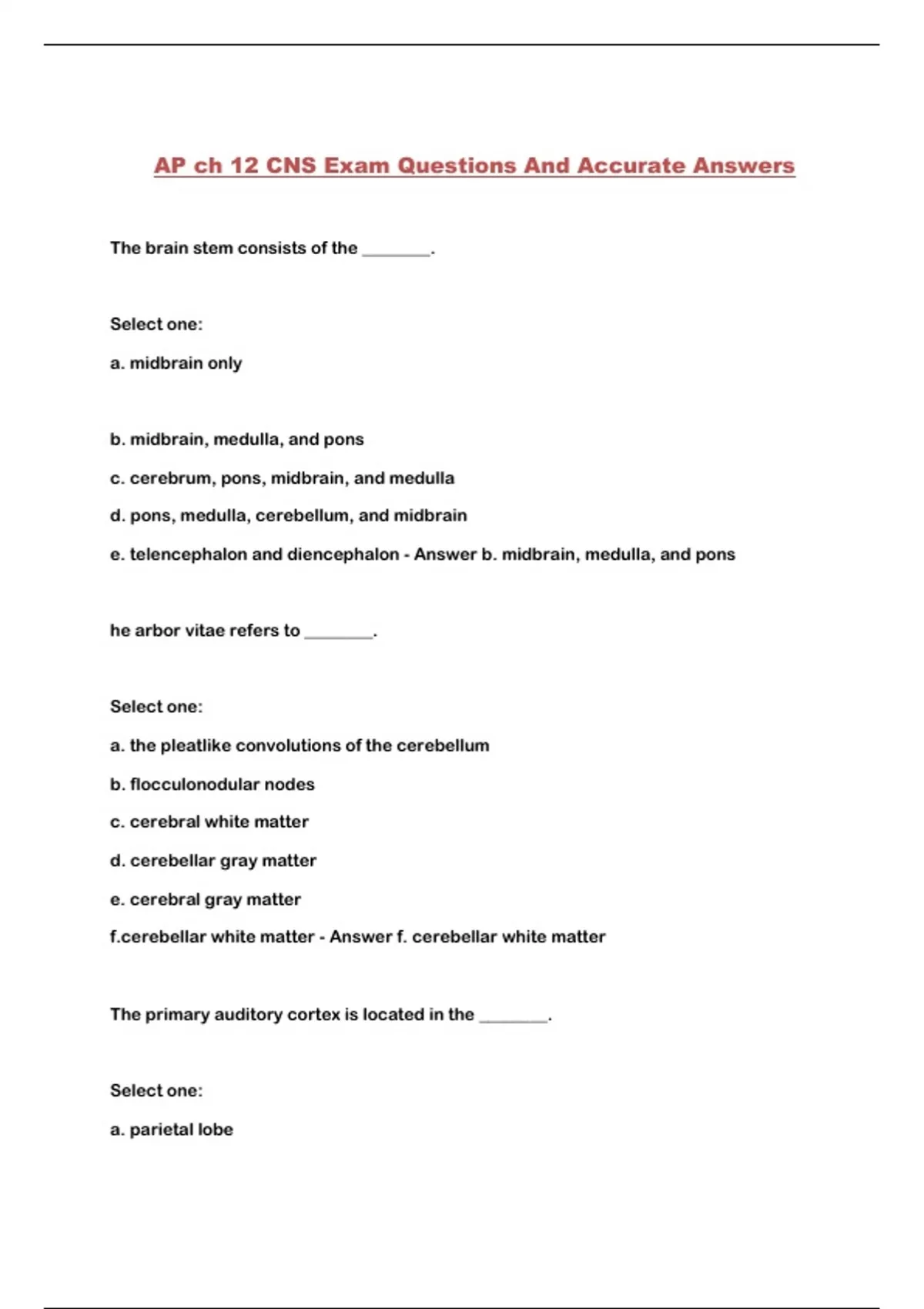 AP ch 12 CNS Exam Questions And Accurate Answers
