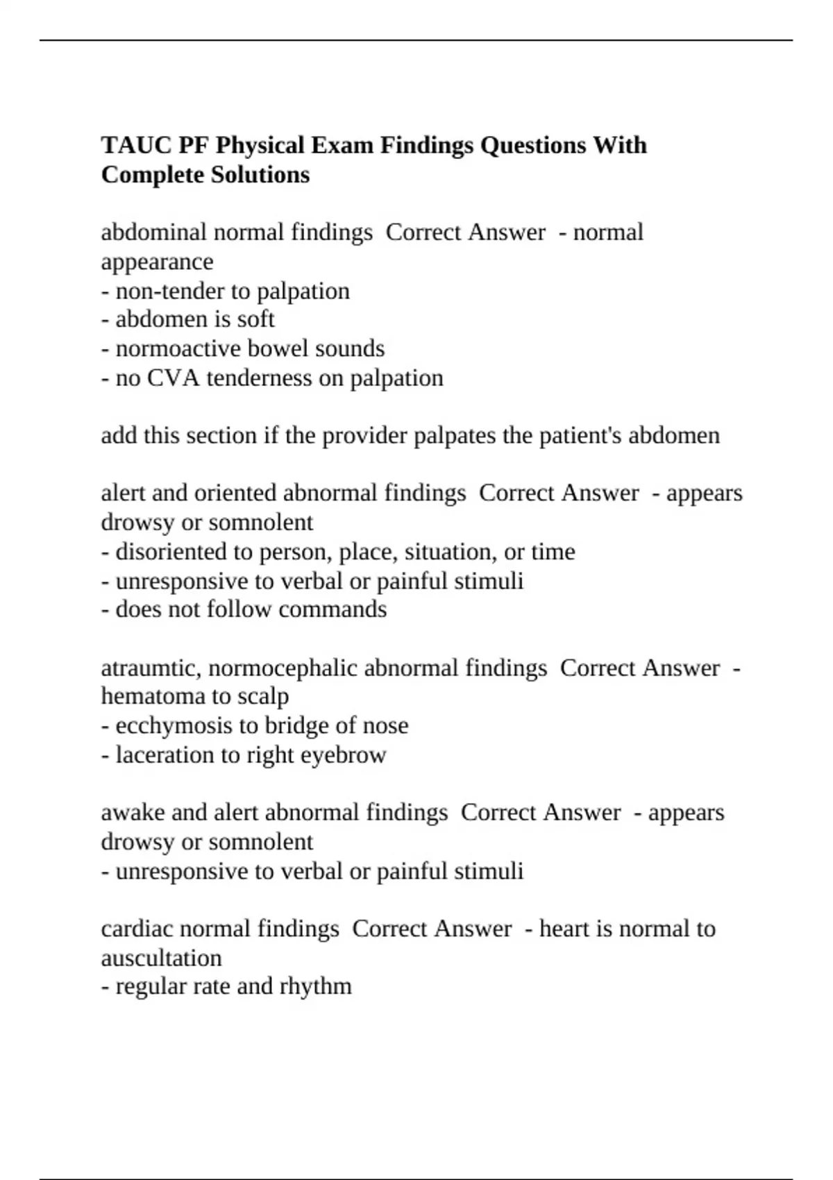 alert and oriented abnormal findings Correct Answer - appears