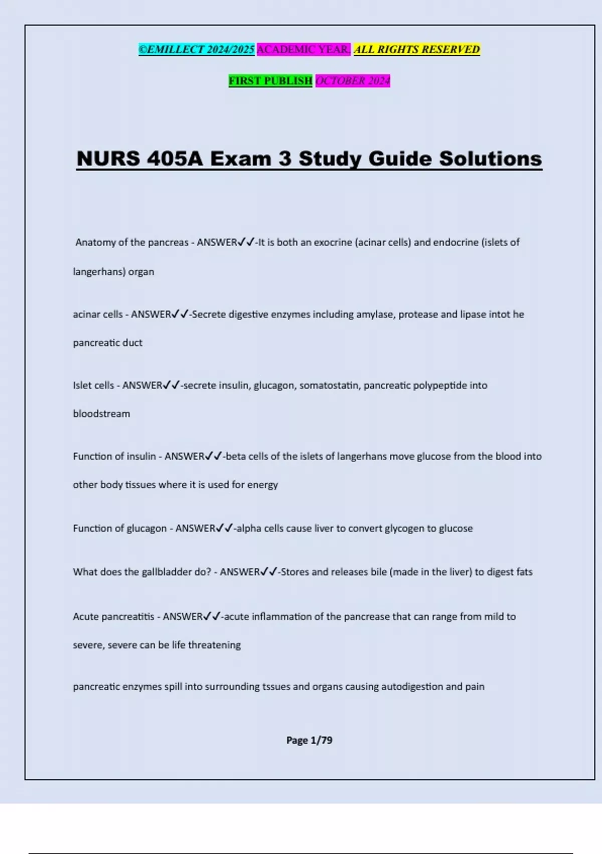 NURS 405A Exam 3 Study Guide Solutions