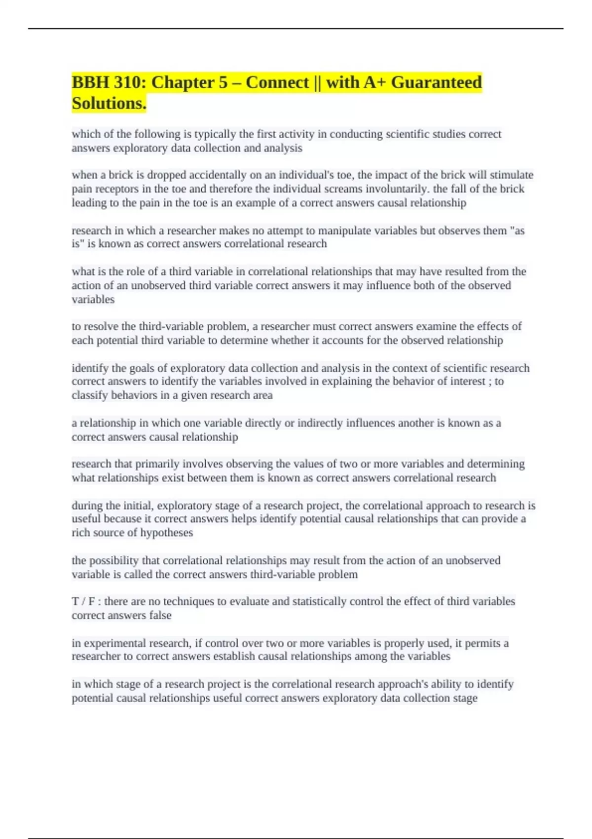 correct answers experimental