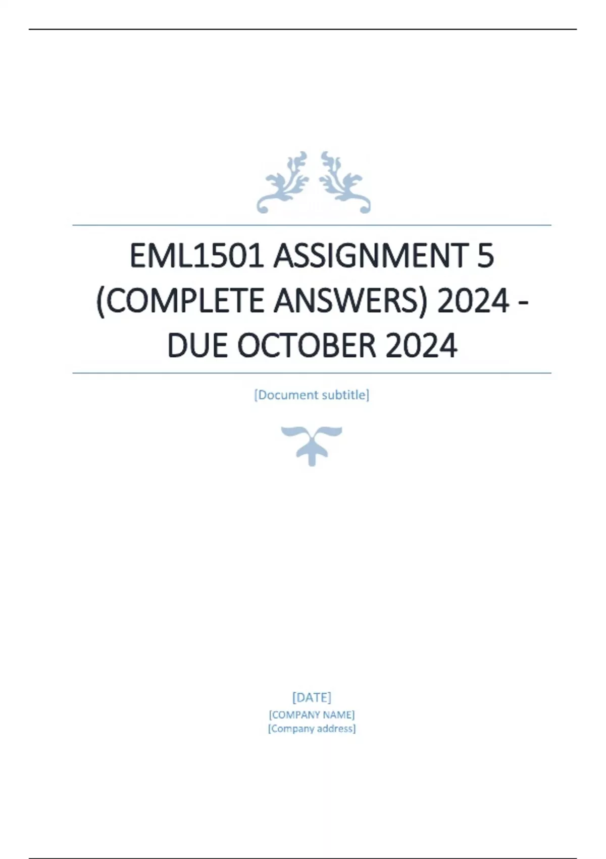 EML1501 Assignment 5 (COMPLETE ANSWERS) 2024 - DUE October 2024