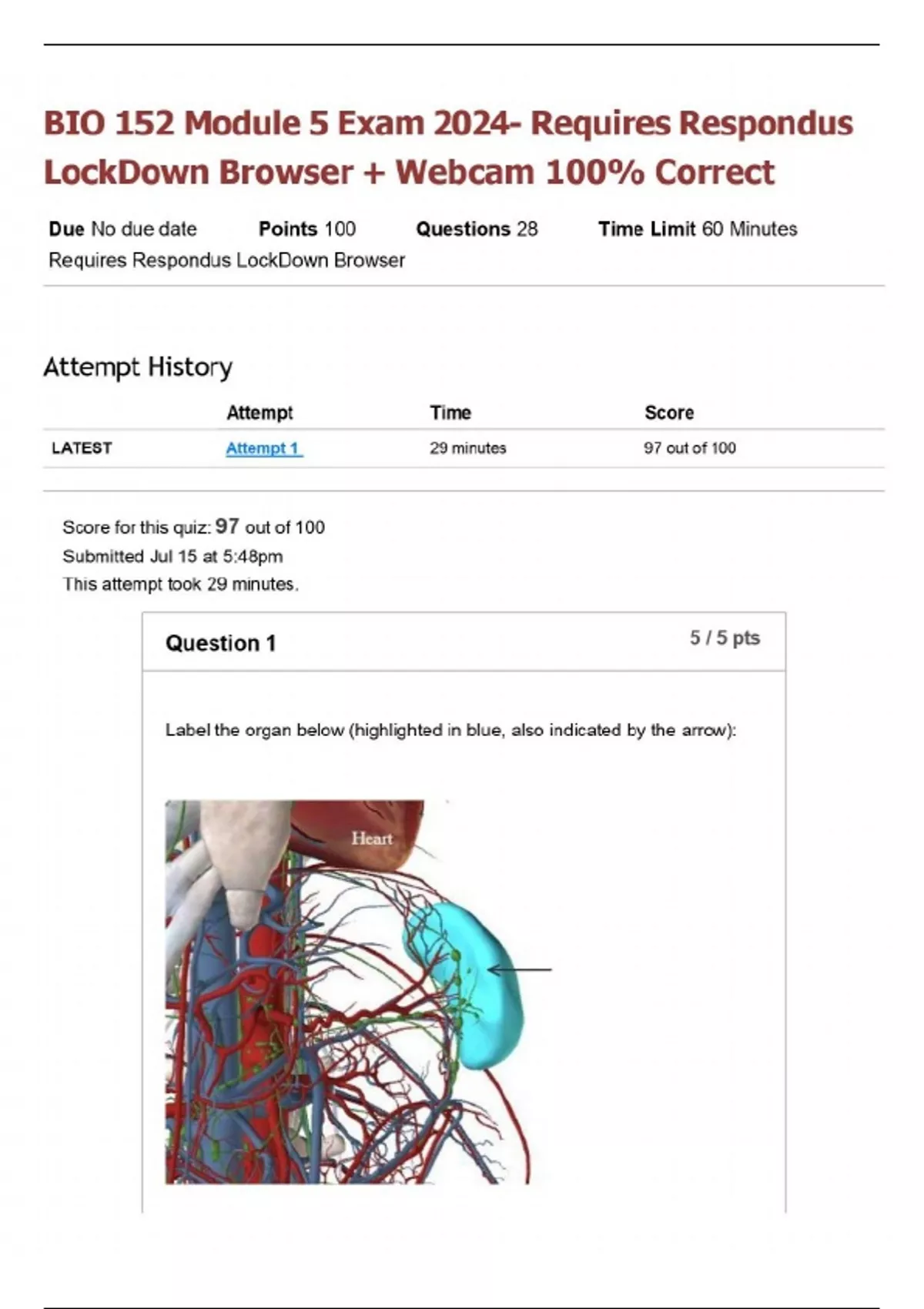 BIO 152 Module 5 Exam 2024- Requires Respondus LockDown Browser + Webcam 100% Correct BIO 152 Module 5 Exam