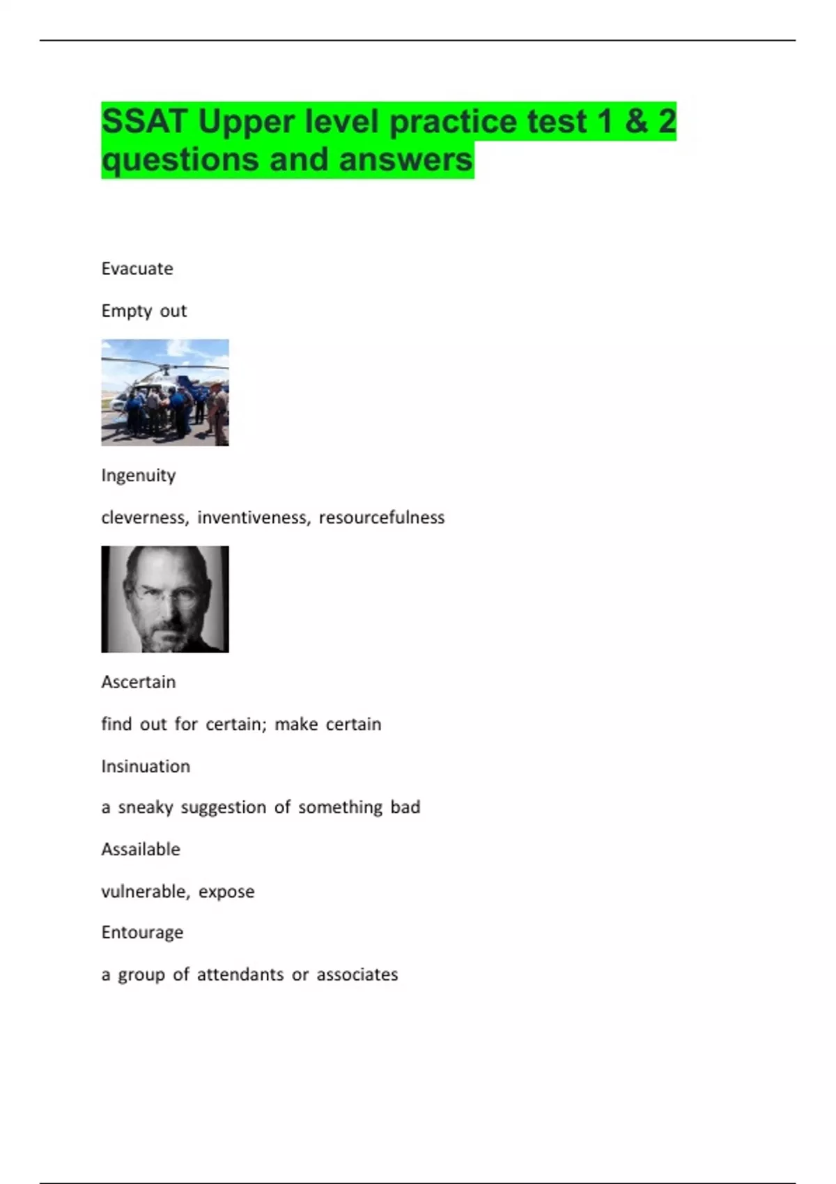 SSAT Upper level practice test 1 & 2