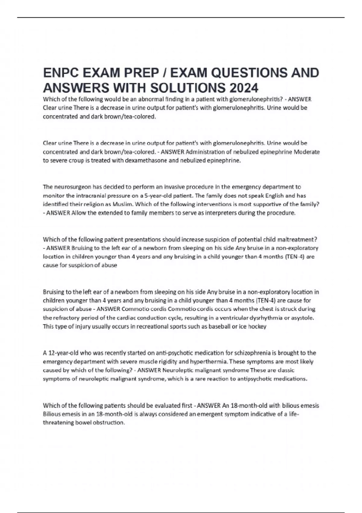 ENPC EXAM PREP / EXAM QUESTIONS AND ANSWERS WITH SOLUTIONS 2024