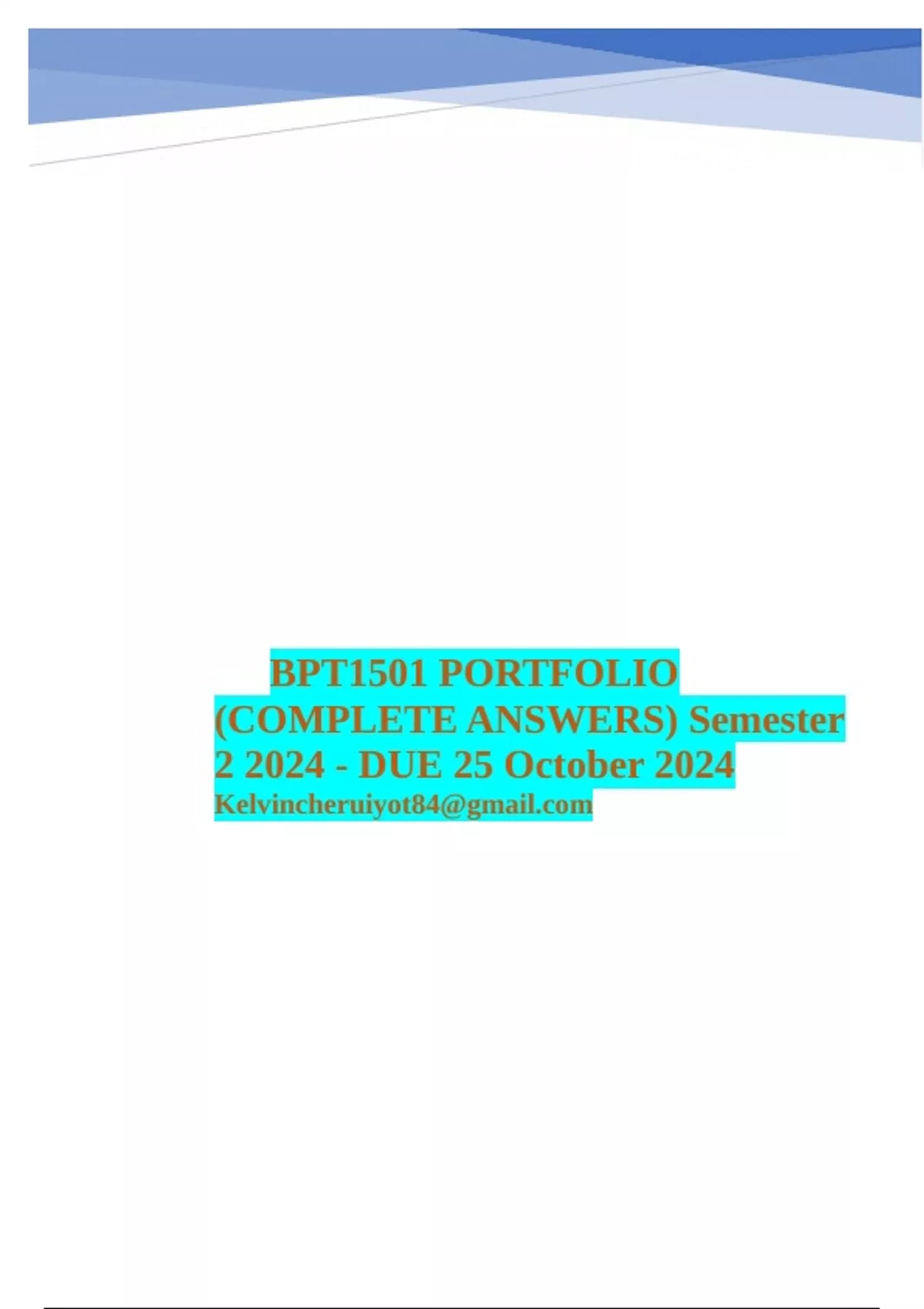 BPT1501 PORTFOLIO (COMPLETE ANSWERS) Semester 2 2024 - DUE 25 October 2024