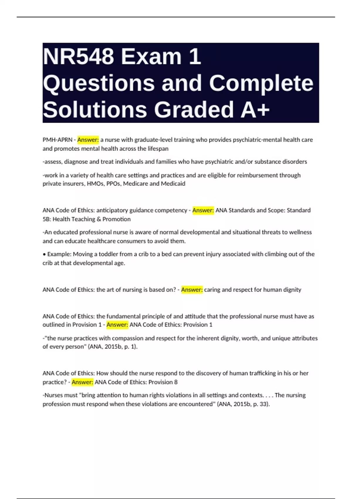 NR548 Exam 1 Questions and Complete Solutions Graded A+