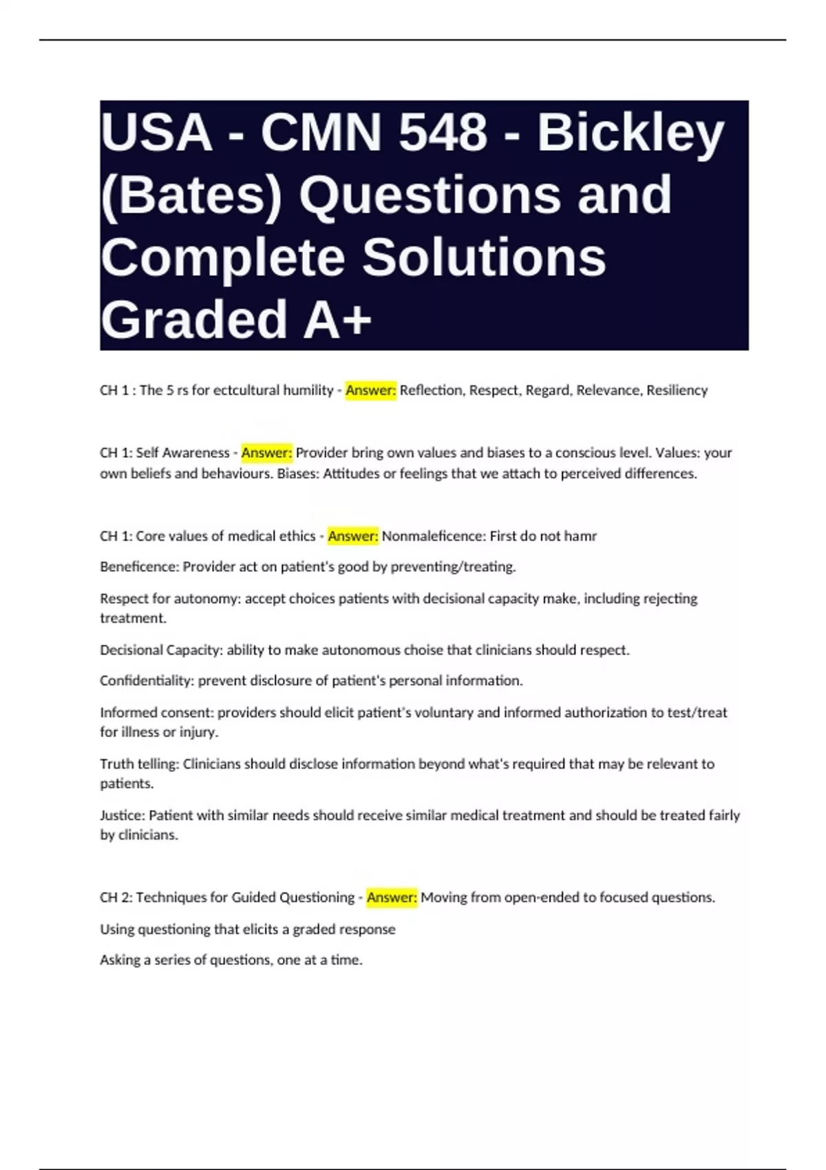 USA - CMN 548 - Bickley (Bates) Questions and Complete Solutions Graded A+