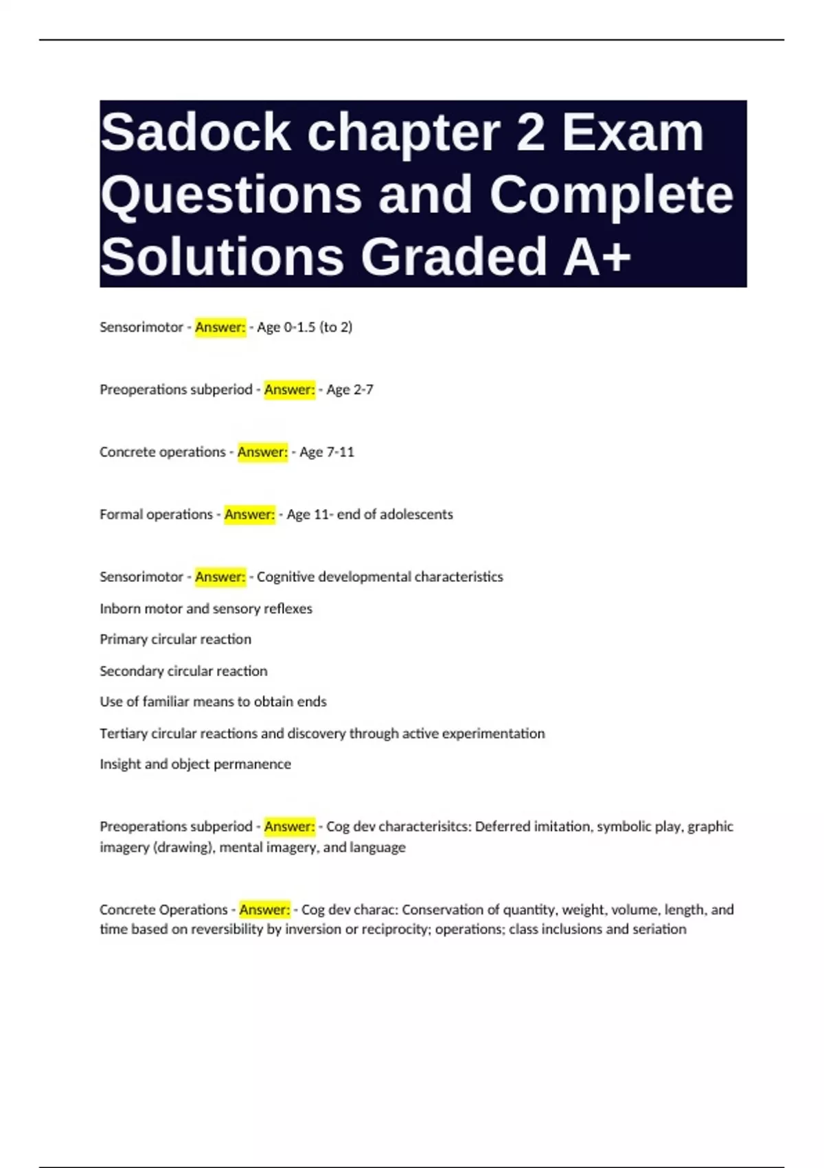 Sensorimotor - Answer: - Cognitive developmental characteristics